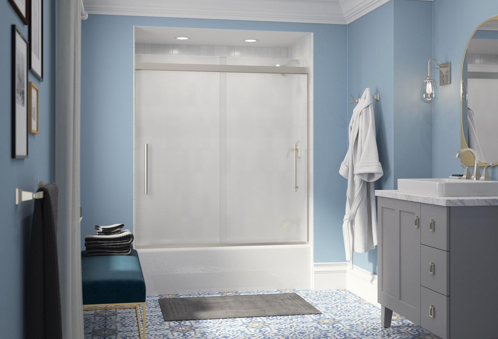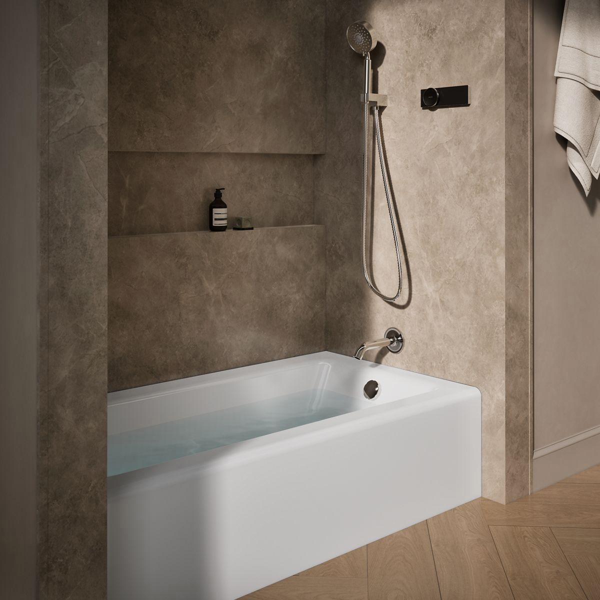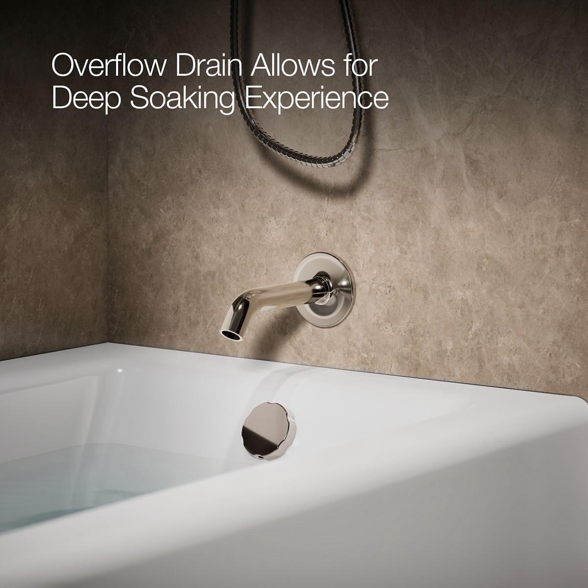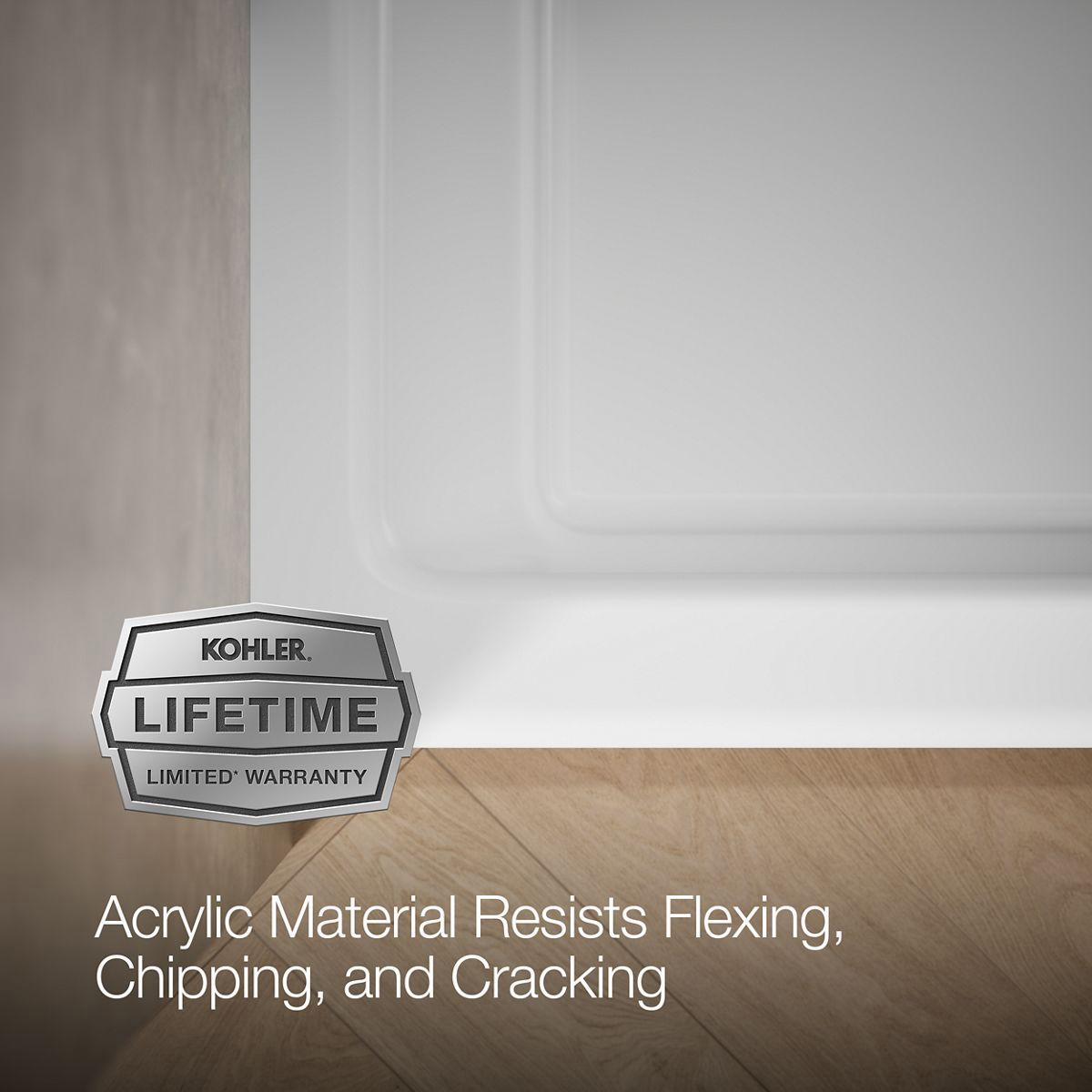 The updated, clean lines of the Bellwether Bath coordinate with a variety of products. Made of KOHLER Cast Iron, it incorporates an integral apron and 3-sided flange for ease of installation. Safeguard slip-resistant surface enhances safety.