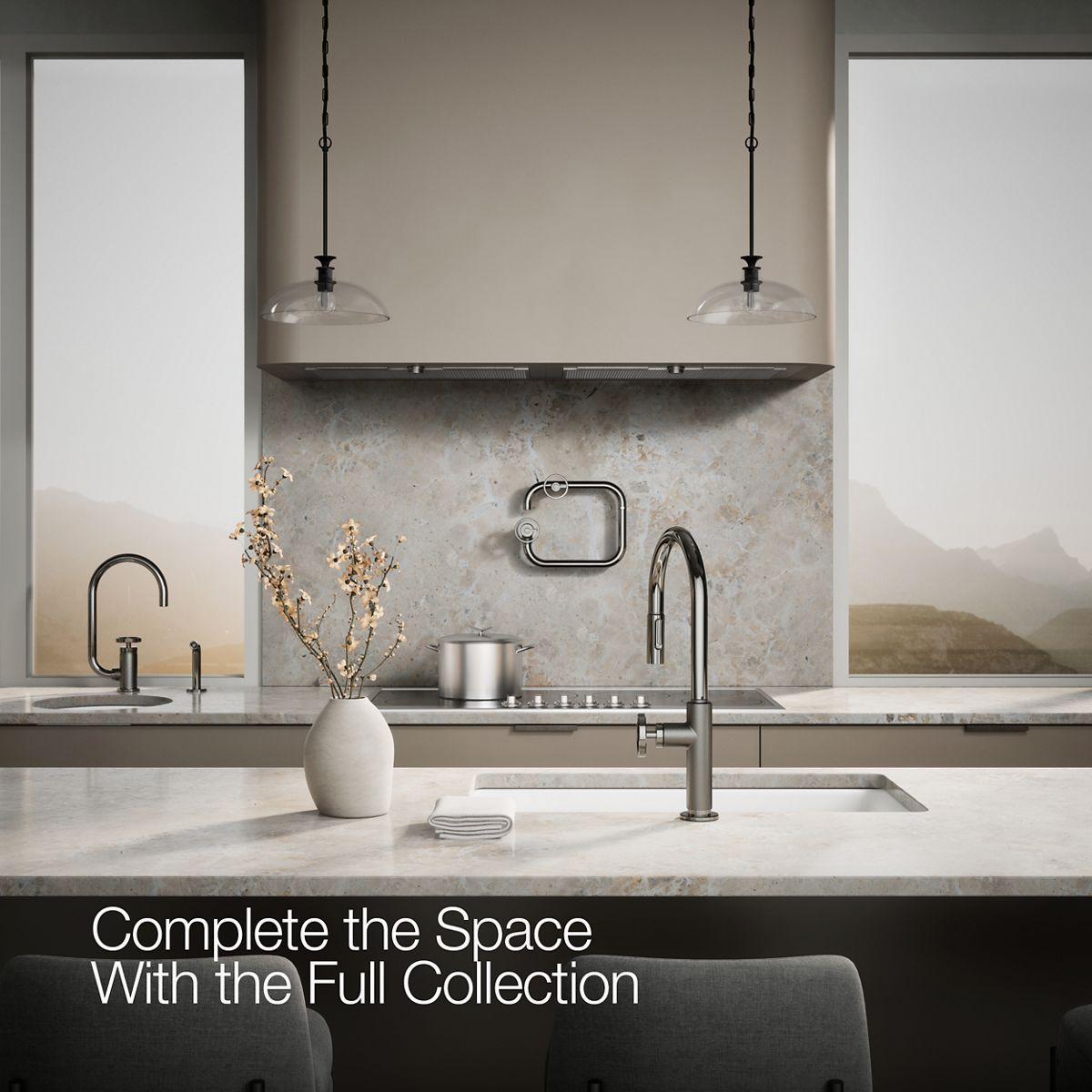 The KOHLER® Billet kitchen faucet collection is a marvel to behold. Paying homage to a casting heritage and legacy within Kohler, this collection reflects the raw beauty of industrialization. Uniquely designed and manufactured to stand out, we bring you the Billet deck-mount kitchen faucet collection.