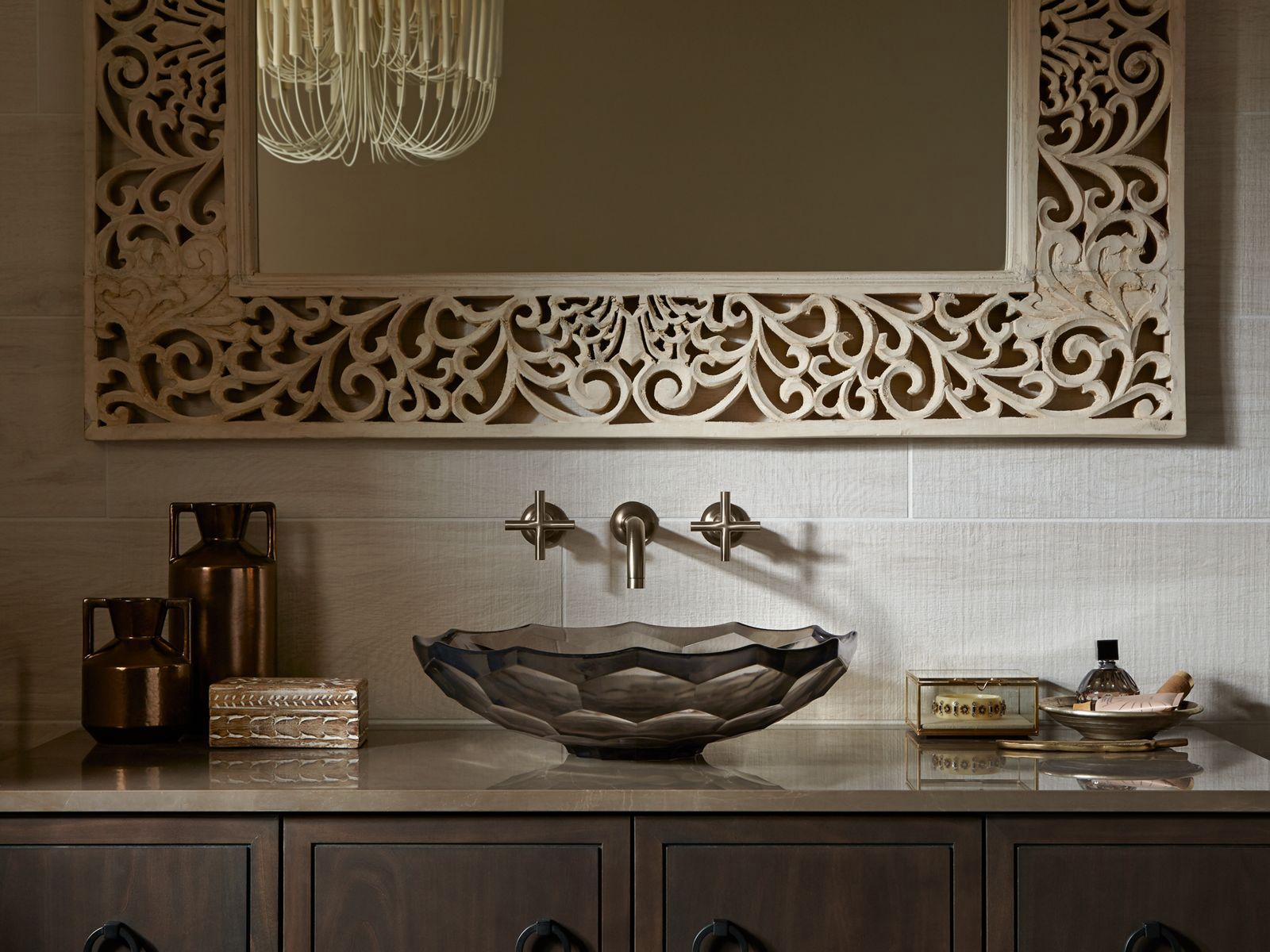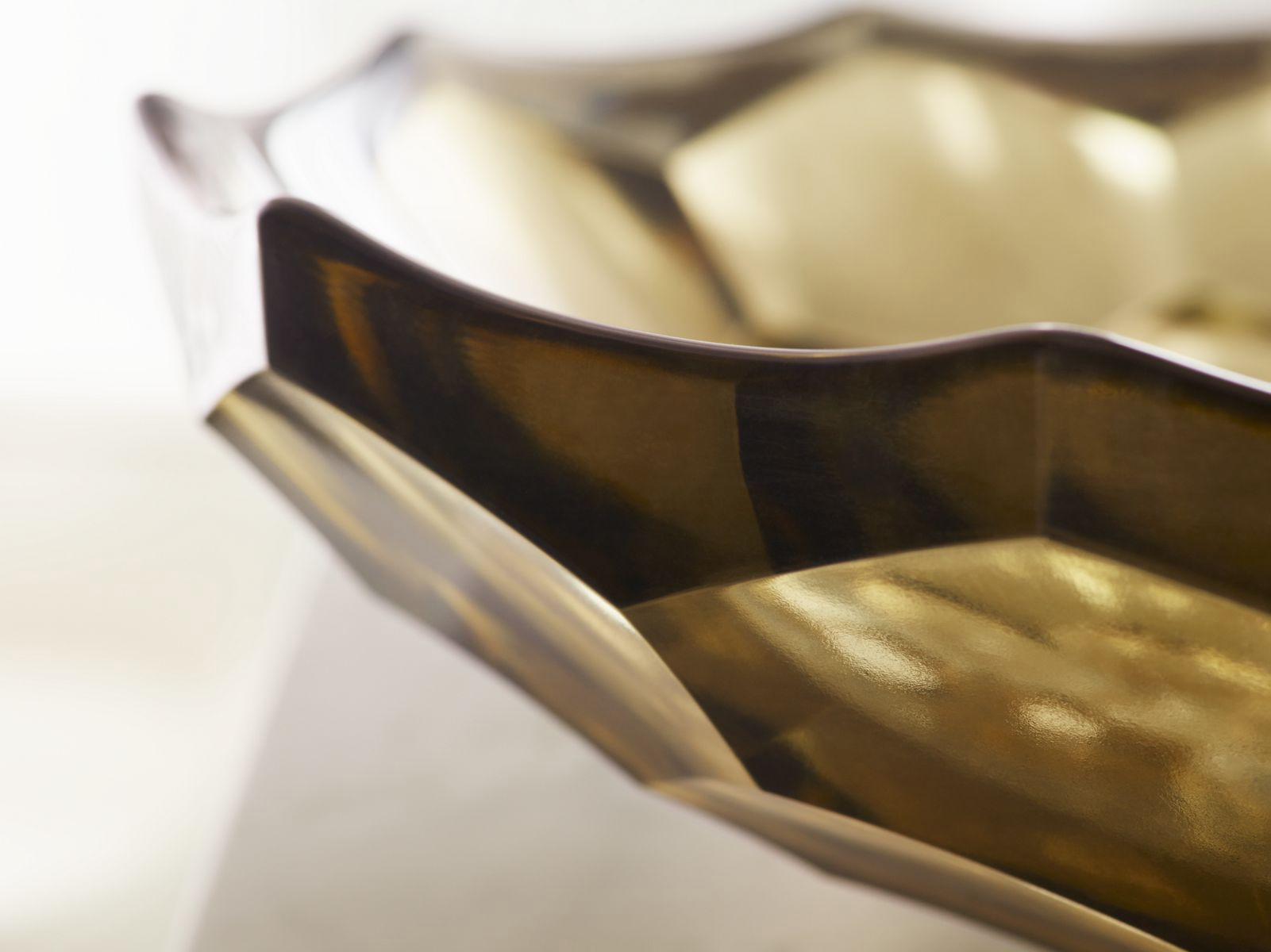 The Briolette glass sink displays a uniquely faceted shape inspired by the precisely cut surfaces of precious stone. Gently curved walls highlight the natural textural qualities of glass and create a striking reflective effect. This sink sits on top of the counter as a brilliant addition to your bath or powder room.