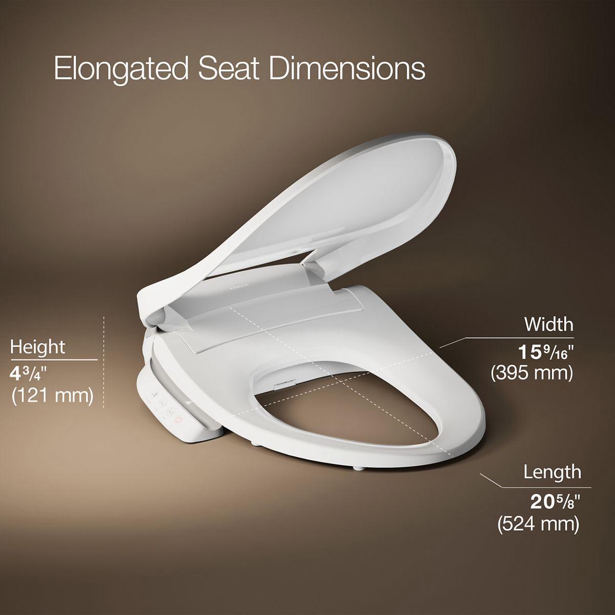 Upgrade your existing toilet to the freshness and convenience of personal cleansing. The C3®-420 heated bidet toilet seat offers the soothing comfort of instant warm water cleansing in a slim, low-profile design that fits most elongated toilets. With KOHLER® Nightlight technology built in, you can safely locate your toilet in the dark. The self-cleaning stainless steel wand uses UV light for automatic sanitizing.