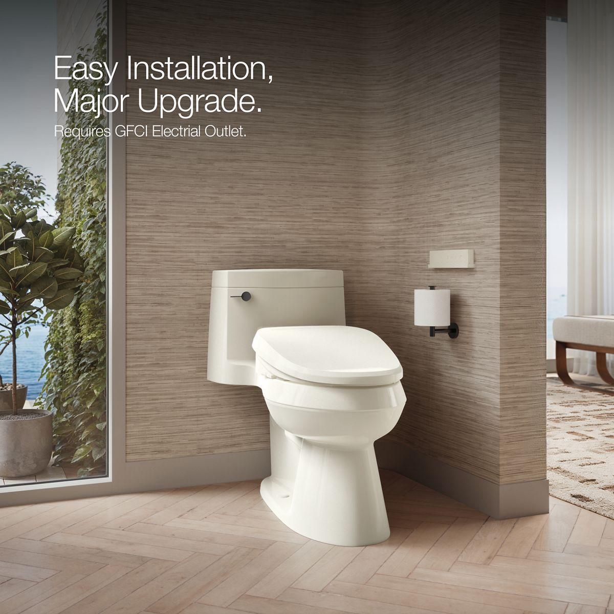 Upgrade your existing toilet to the freshness of personal cleansing, combined with the convenience of a handheld remote control. The PureWash E820 bidet toilet seat has a sleek, streamlined design that fits most elongated toilets and uses soothing heated water to provide a higher level of cleansing and hygiene. Adjust the water temperature, spray, and heated seat with the remote, and save your favorite settings for easy use. A built-in nightlight illuminates the bowl, and the self-cleaning stainless steel wand uses UV light for automatic cleaning.