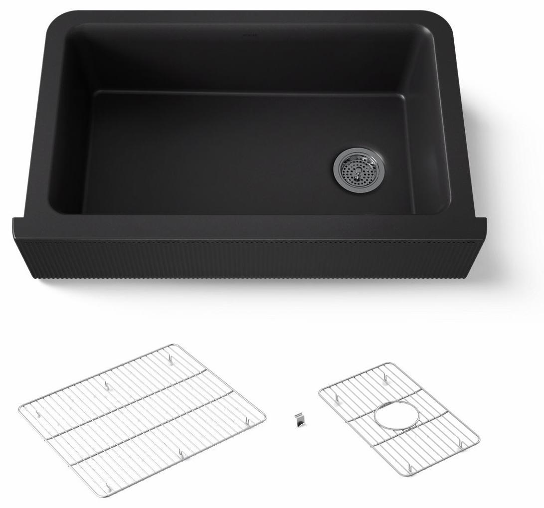 Cairn 1 Bowl Undermount Farmhouse Kitchen Sink with Fluted Design and Tall Apron - Matte Black 25788-CM1 Kohler