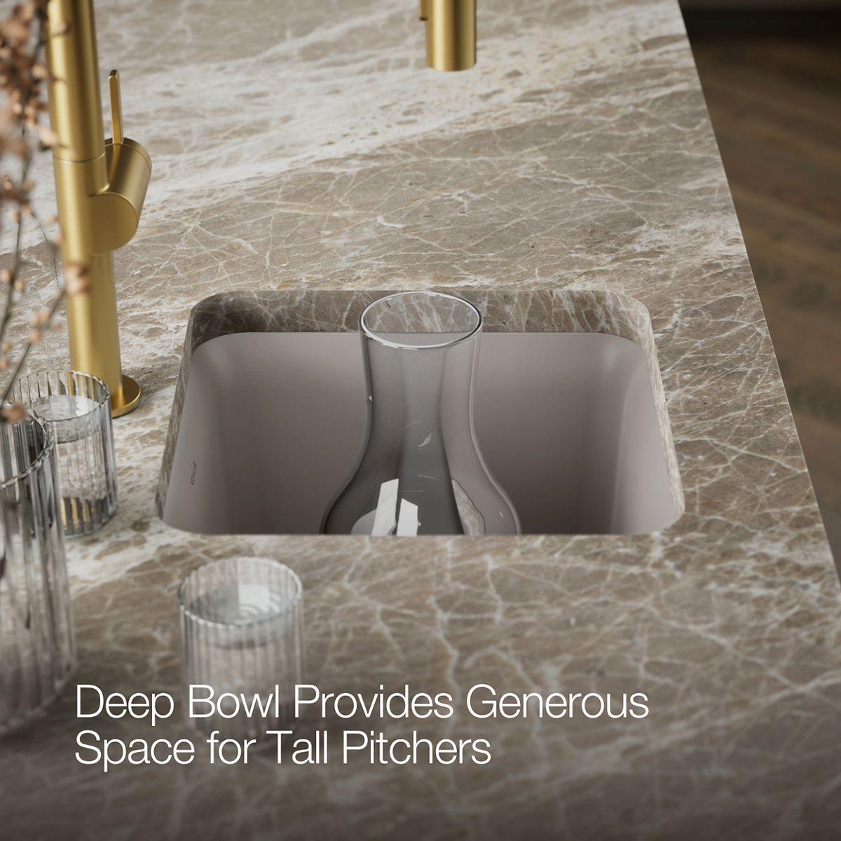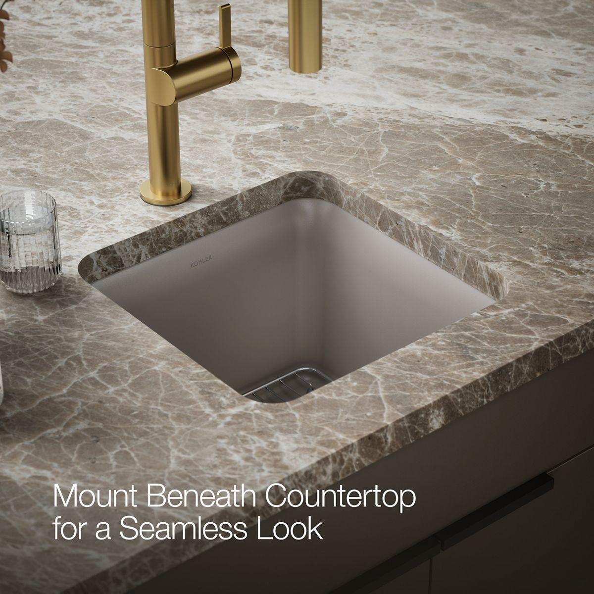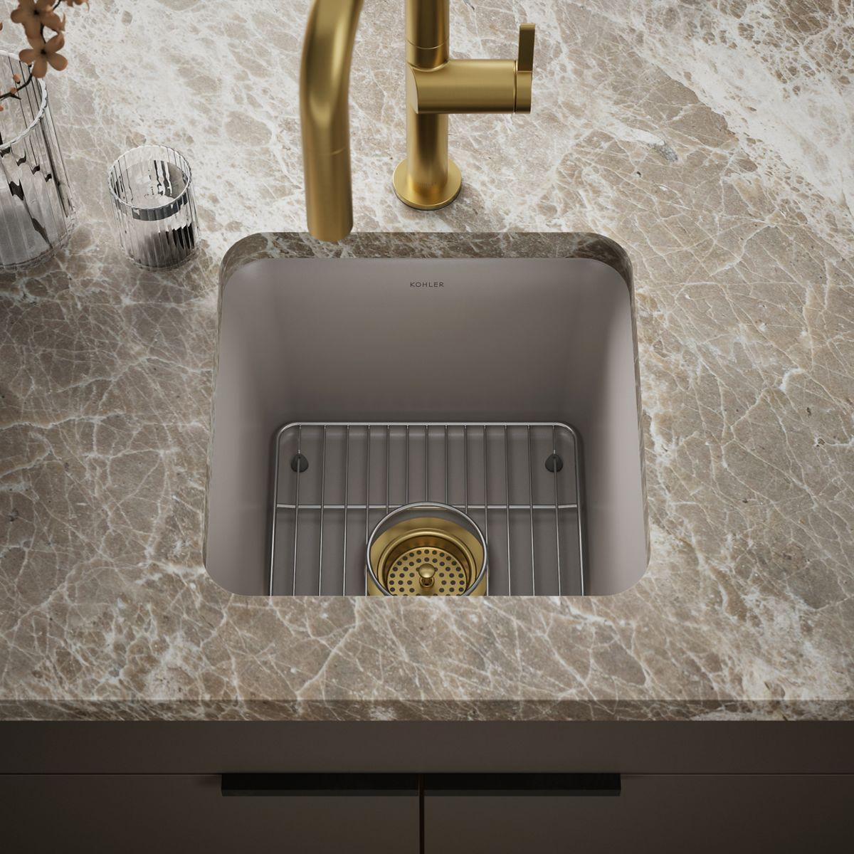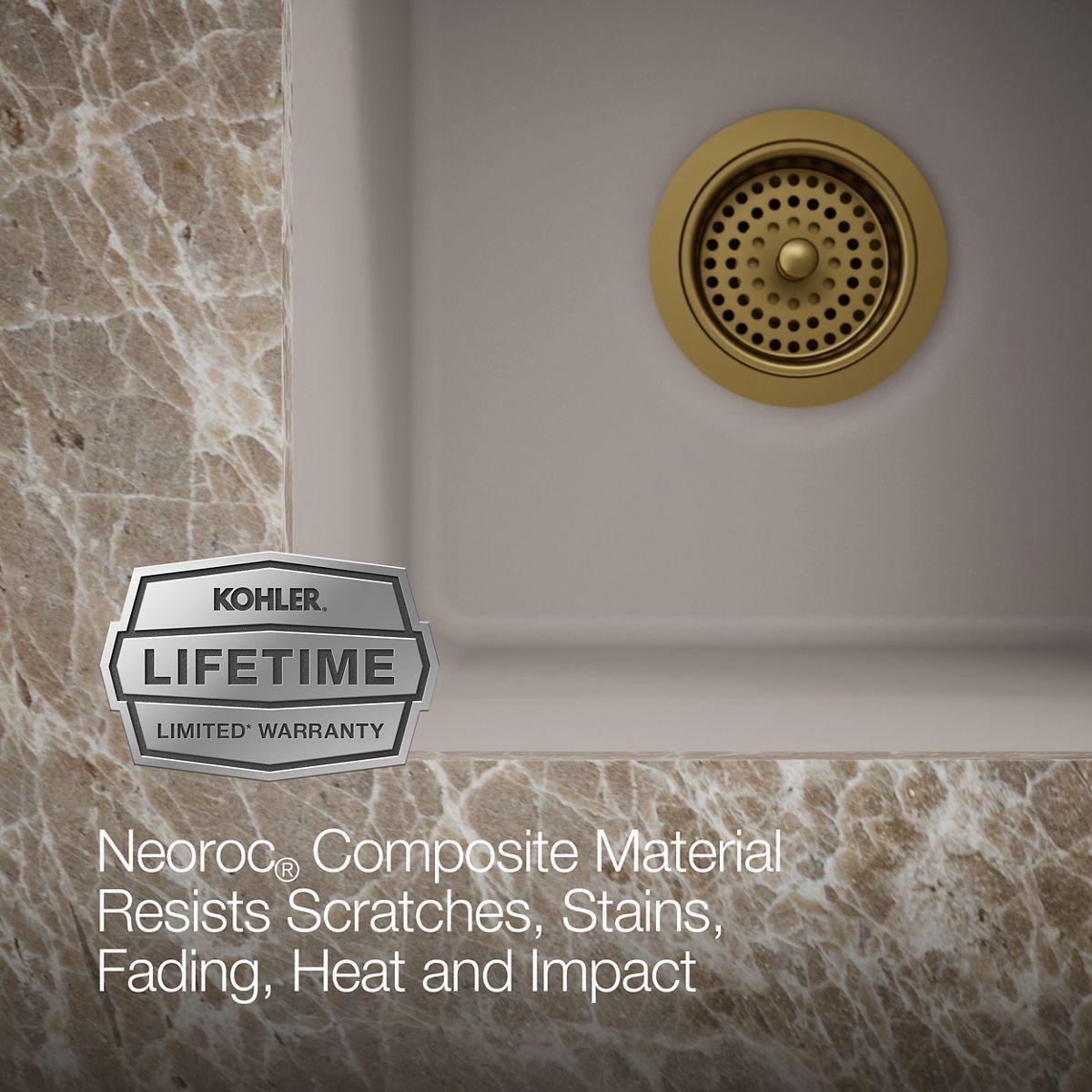 With soft French curves, the Cairn sink offers transitional style to suit contemporary and traditional kitchens alike. The Cairn bar sink is made of KOHLER Neoroc , a matte-finish composite material designed for extreme durability and unmatched beauty. Richly colored to complement any countertop, Neoroc resists scratches, stains, and fading and is highly heat- and impact-resistant. This bar sink includes a bottom sink rack to keep the surface looking new.