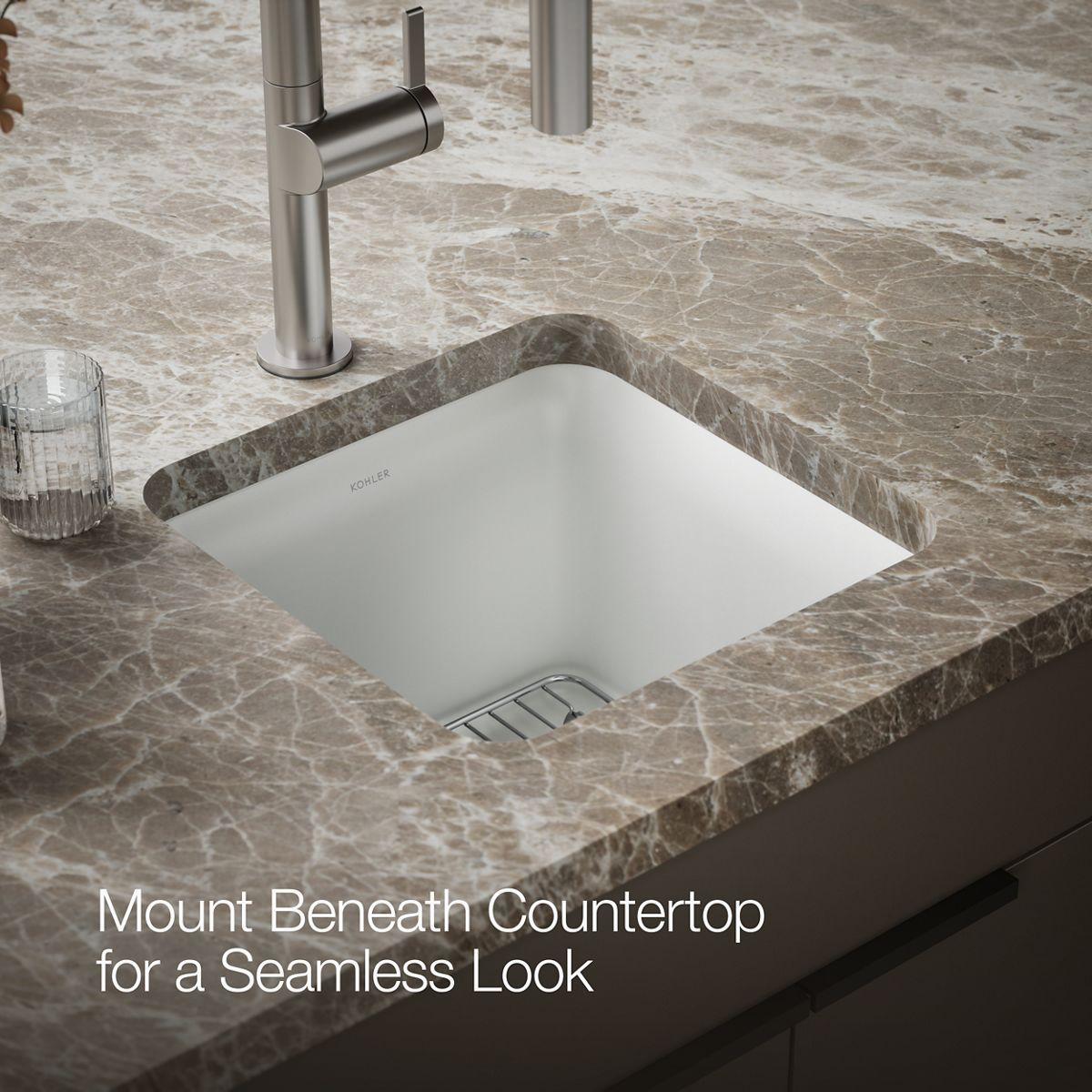 With soft French curves, the Cairn sink offers transitional style to suit contemporary and traditional kitchens alike. The Cairn bar sink is made of KOHLER Neoroc®, a matte-finish composite material designed for extreme durability and unmatched beauty. Richly colored to complement any countertop, Neoroc resists scratches, stains, and fading and is highly heat- and impact-resistant. This bar sink includes a bottom sink rack to keep the surface looking new.