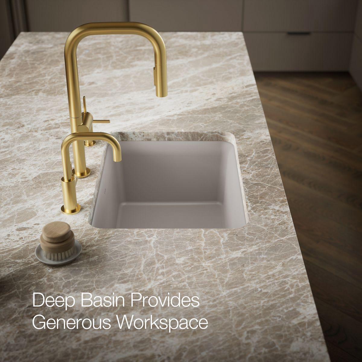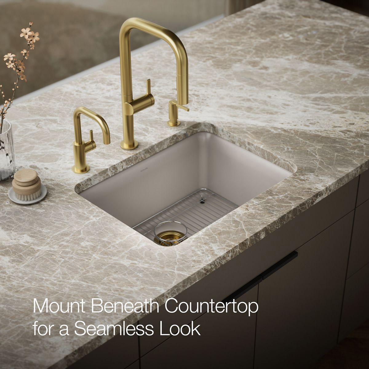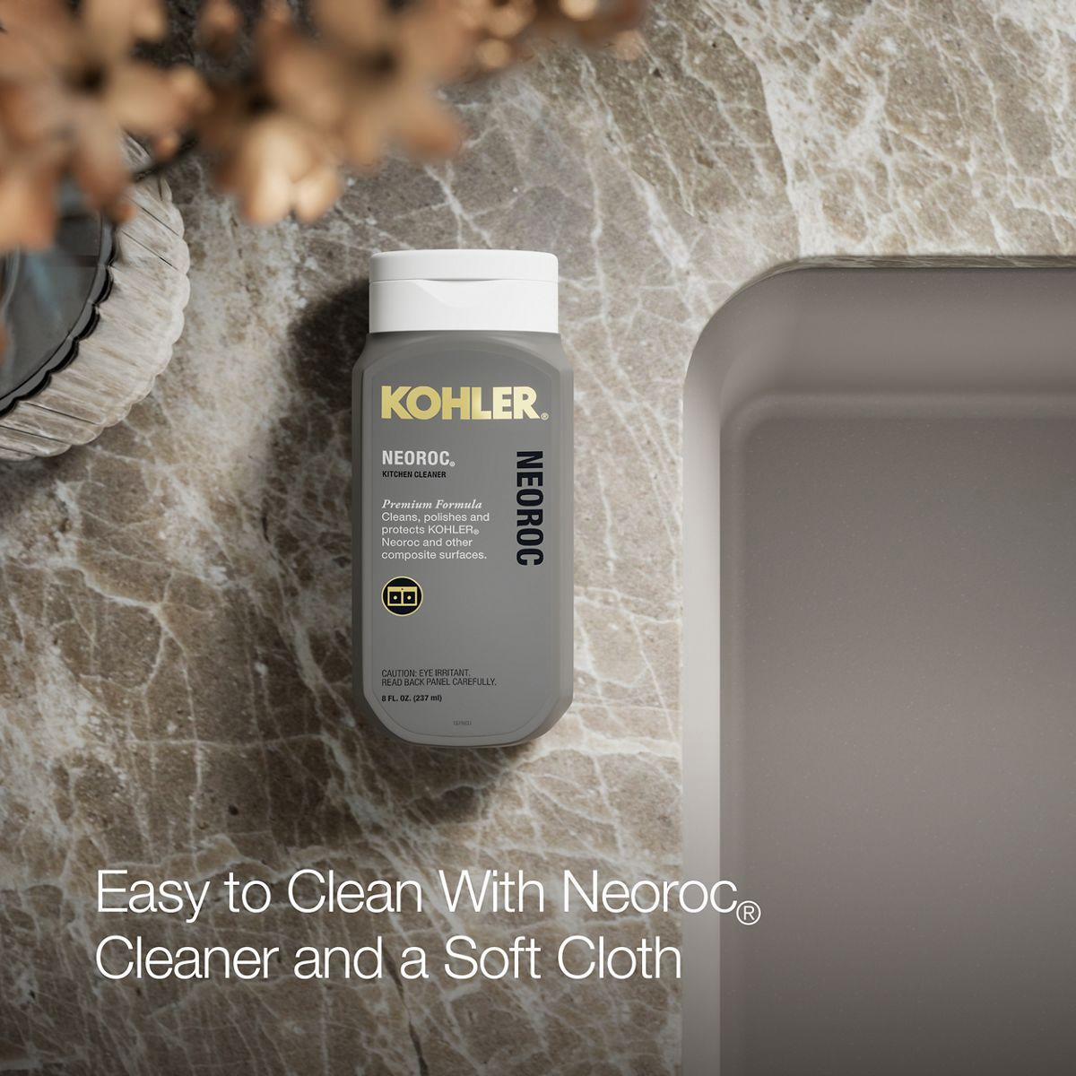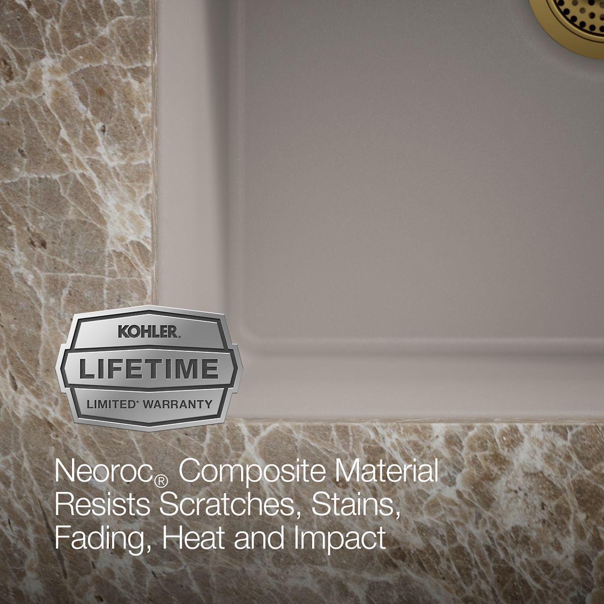 With soft French curves, the Cairn sink offers transitional style to suit contemporary and traditional kitchens alike. The Cairn sink is made of KOHLER Neoroc, a matte-finish composite material designed for extreme durability and unmatched beauty. Richly colored to complement any countertop, Neoroc resists scratches, stains, and fading and is highly heat- and impact-resistant. This sink includes a bottom sink rack to keep the surface looking new.