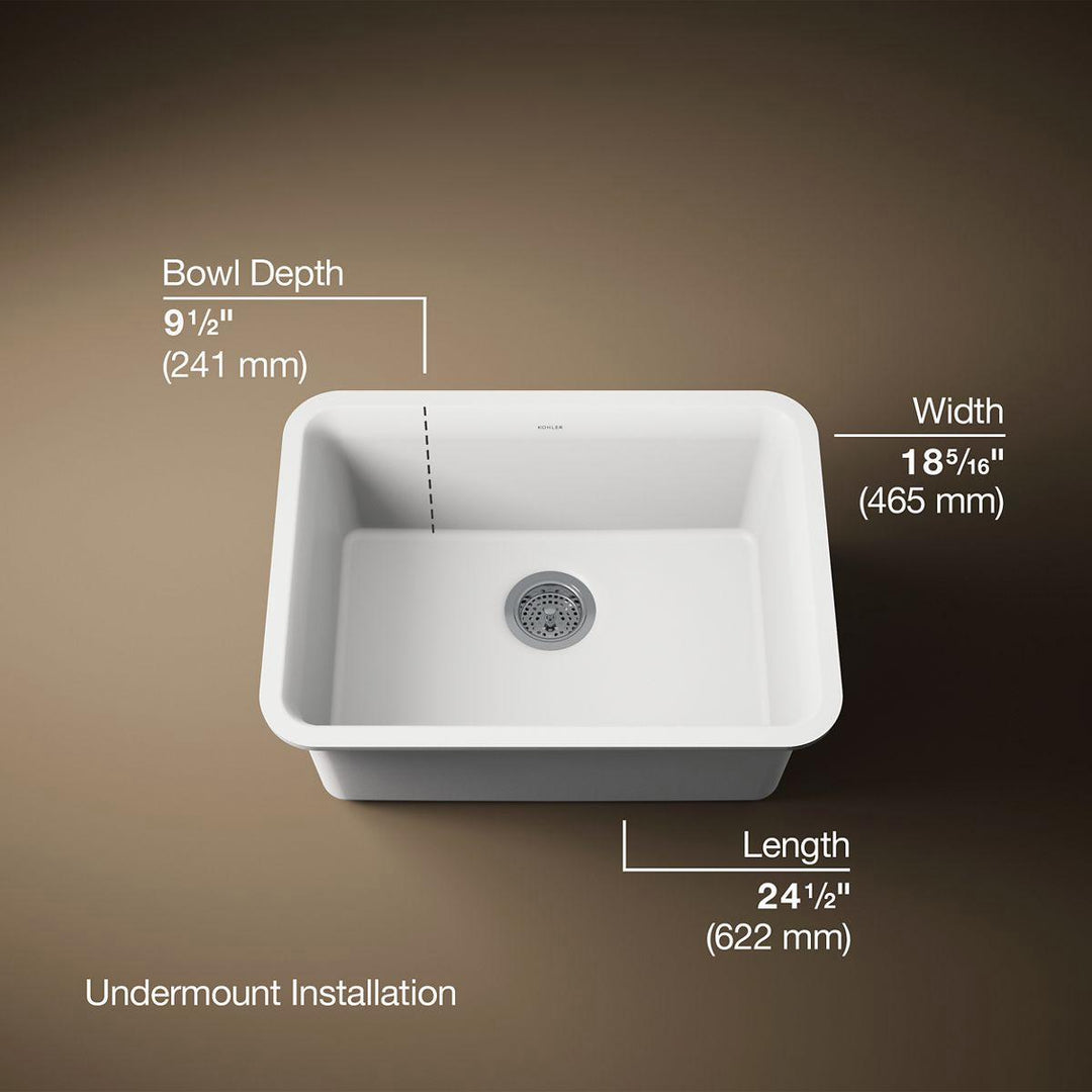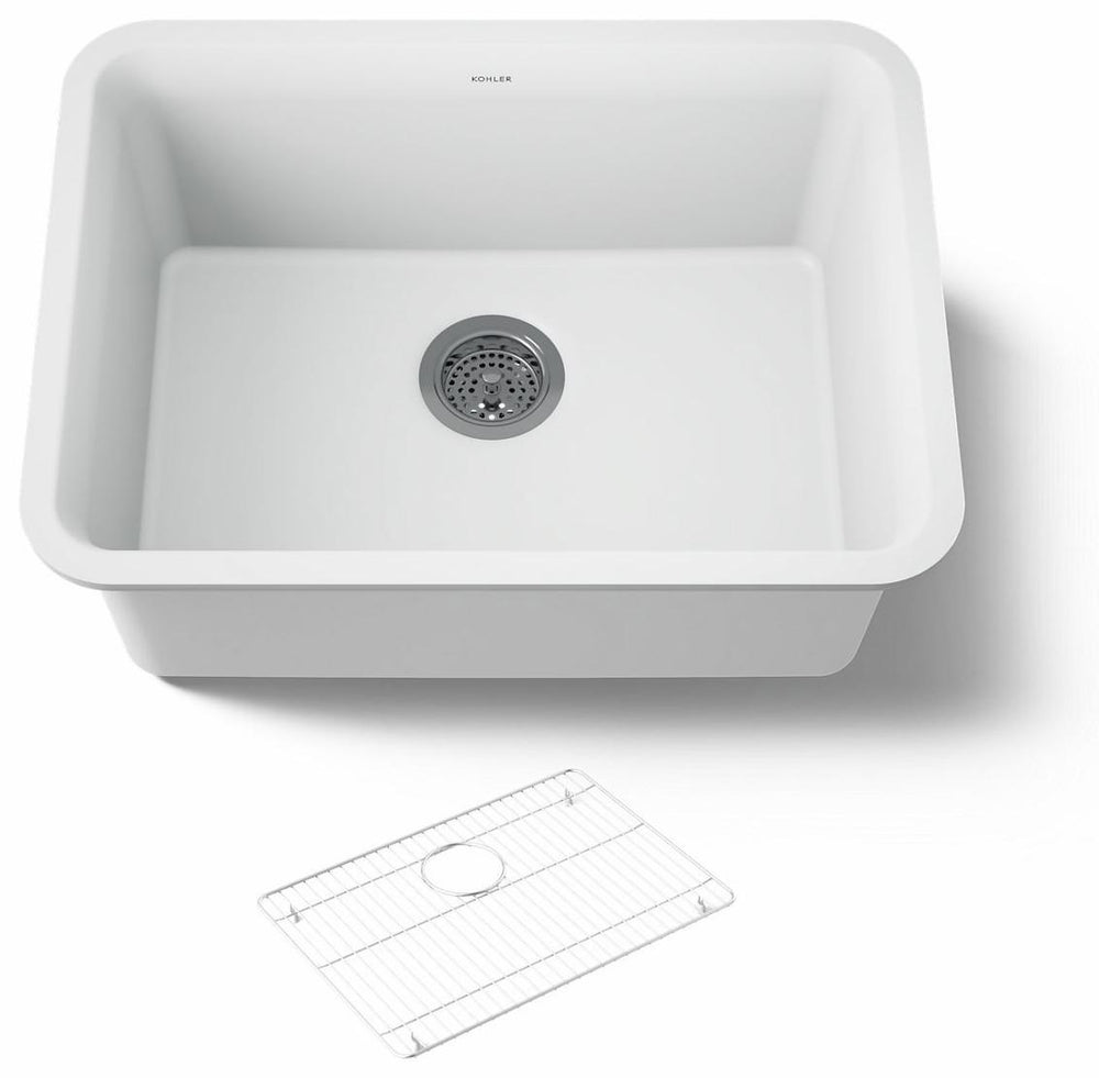 Cairn 24-1/2" 1 Bowl Undermount Neoroc Sink with Rack - Matte White 28001-CM6 Kohler