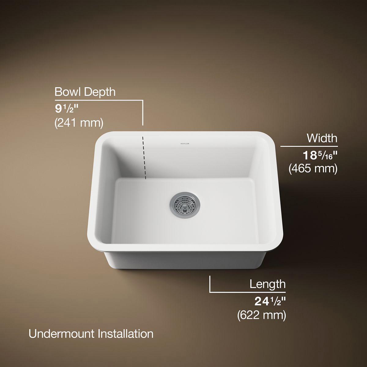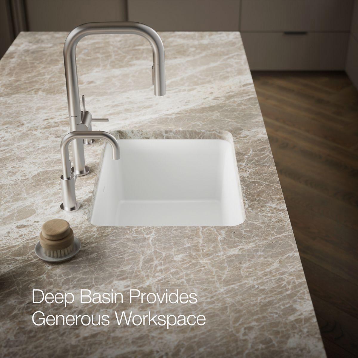 With soft French curves, the Cairn sink offers transitional style to suit contemporary and traditional kitchens alike. The Cairn sink is made of KOHLER Neoroc®, a matte-finish composite material designed for extreme durability and unmatched beauty. Richly colored to complement any countertop, Neoroc resists scratches, stains, and fading and is highly heat- and impact-resistant. This sink includes a bottom sink rack to keep the surface looking new.