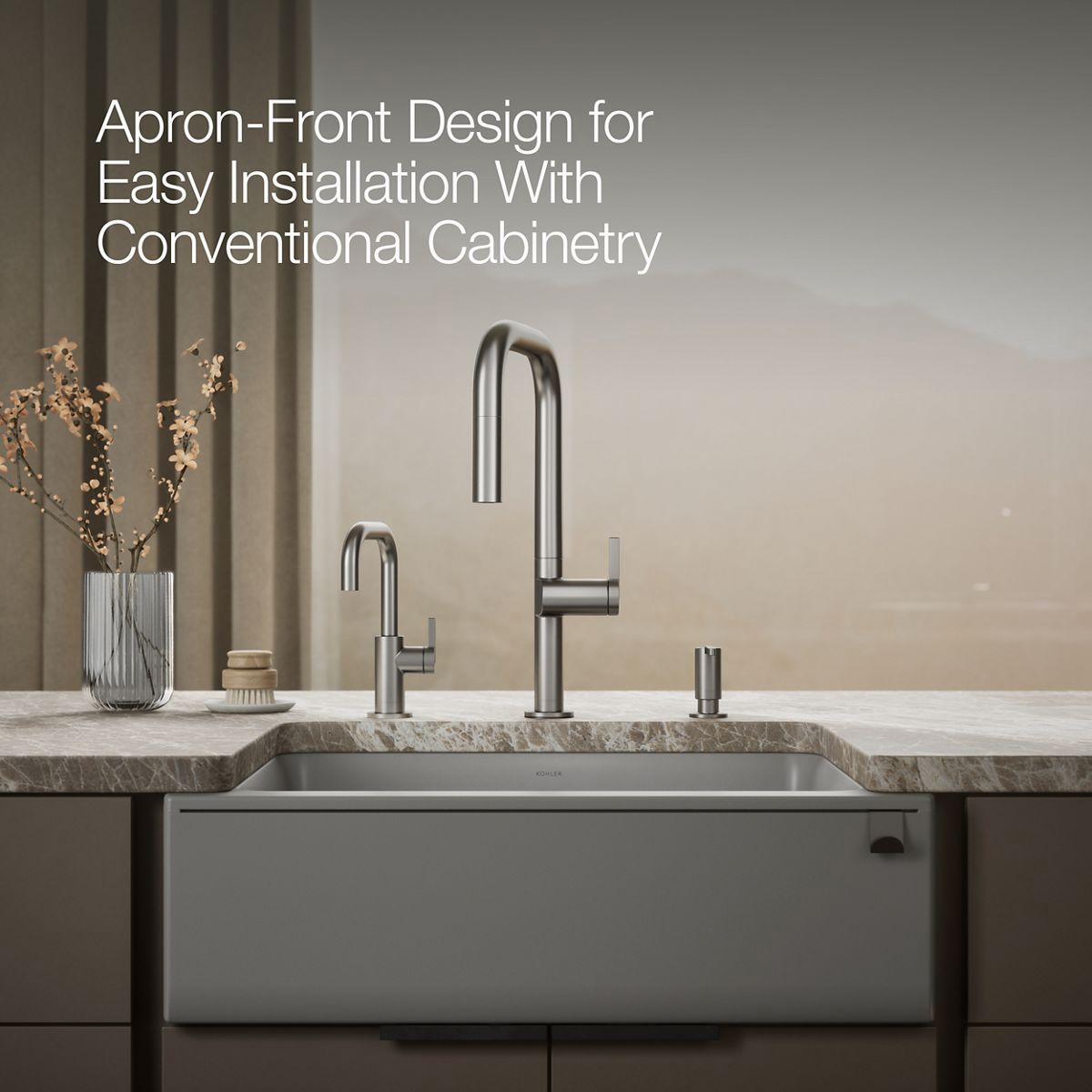 - Apron designed to fit in standard 30" (762 mm) apron-front cabinetry