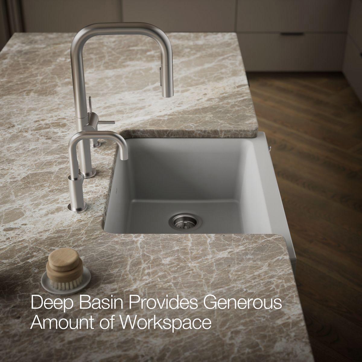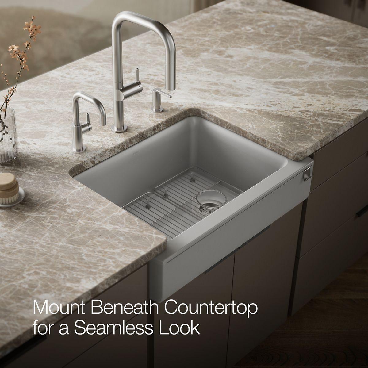 Cairn 29-3/4" 1 Bowl Undermount Farmhouse Kitchen Sink with Short Apron - Matte Grey 25785-CM4 Kohler