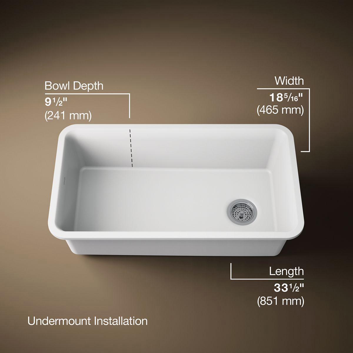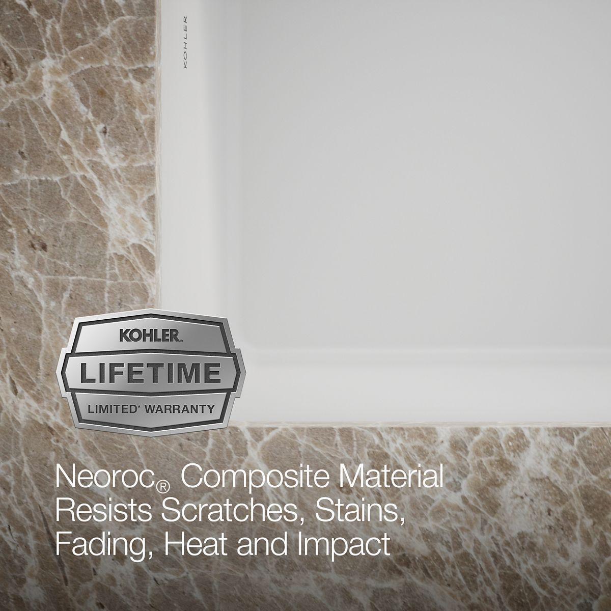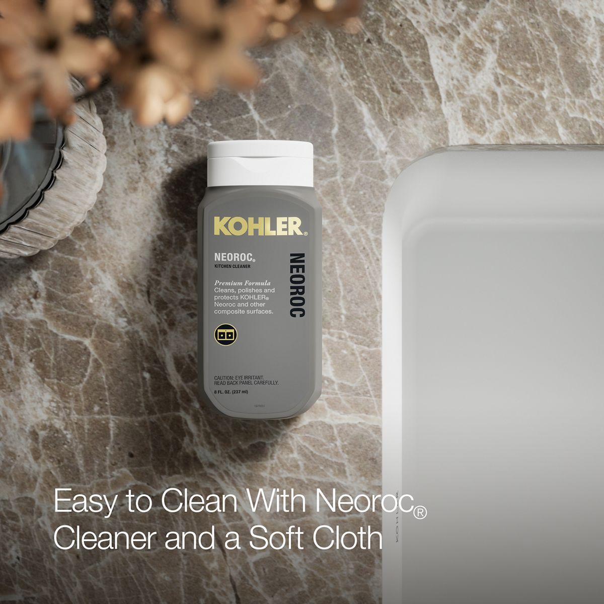 With soft French curves, the Cairn sink offers transitional style to suit contemporary and traditional kitchens alike. The Cairn sink is made of KOHLER Neoroc®, a matte-finish composite material designed for extreme durability and unmatched beauty. Richly colored to complement any countertop, Neoroc resists scratches, stains, and fading and is highly heat- and impact-resistant. This sink includes a bottom sink rack to keep the surface looking new.