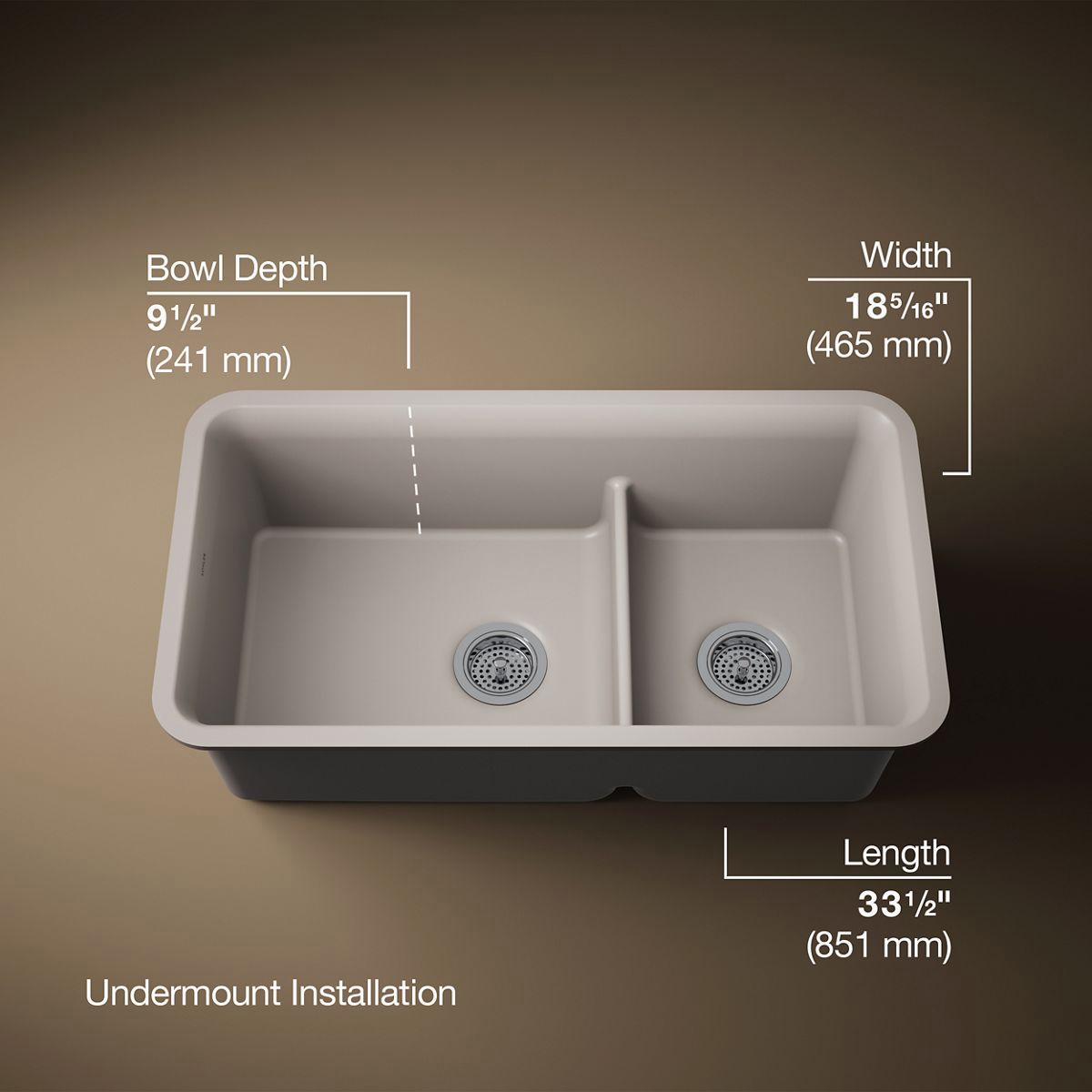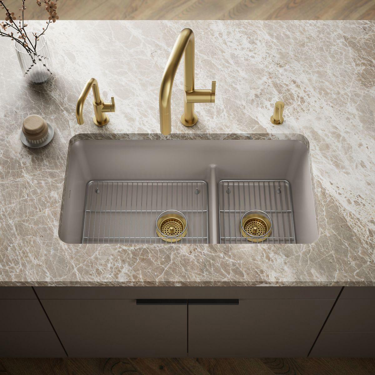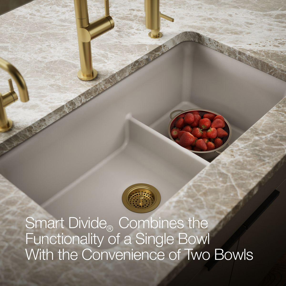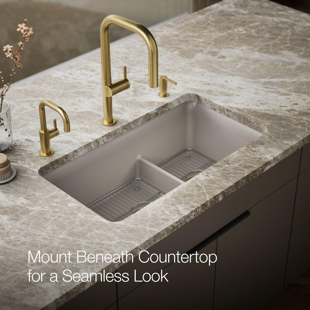 Cairn 33-1/2" Smart Divide 2 Bowl Undermount Neoroc Kitchen Sink with Racks - Matte Taupe 27786-CM3 Kohler