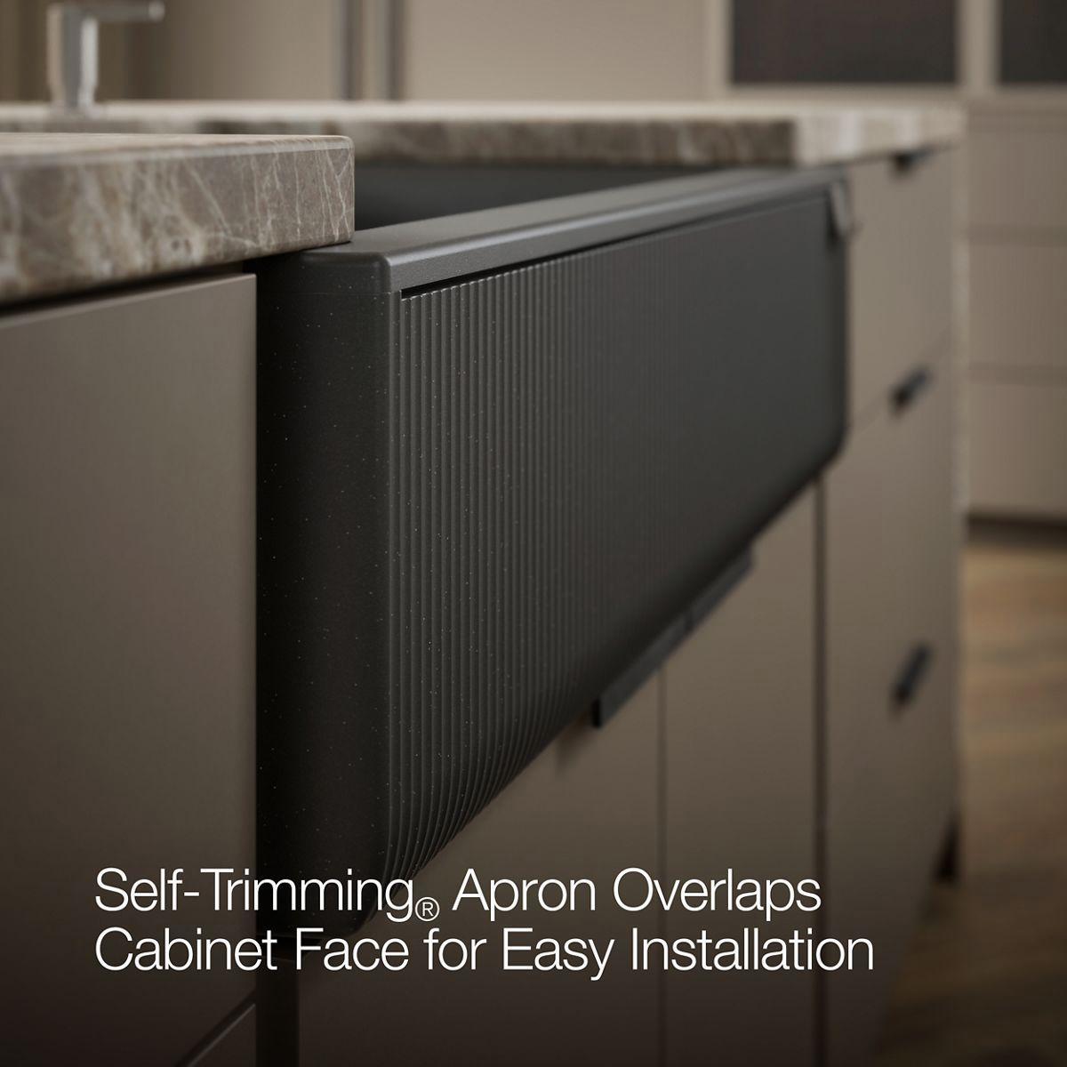 - Self-Trimming® apron overlaps cabinet face for easy installation and beautiful results