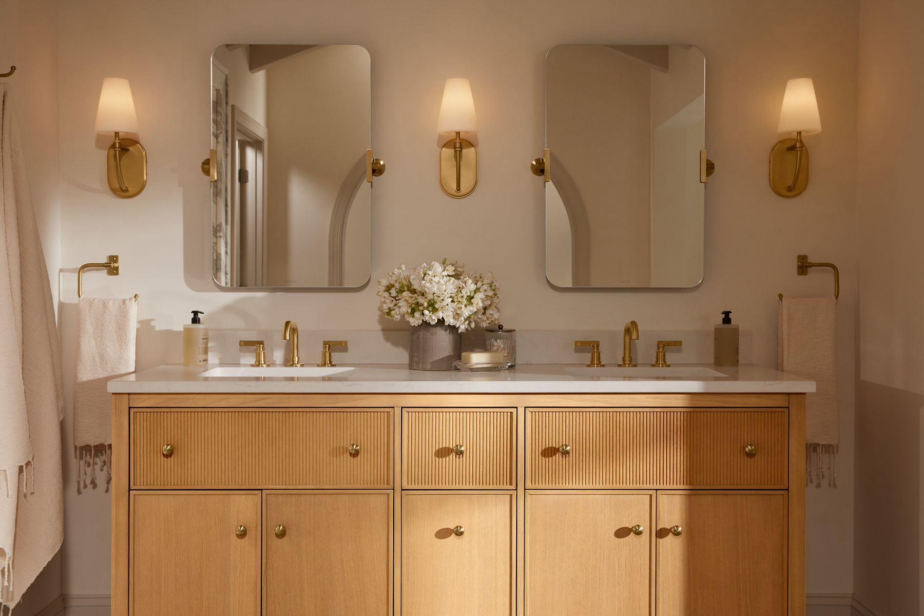 Drawing inspiration from the archives, the Castia bathroom faucet and accessory collection from Kohler x Studio McGee combines classic and modern influences in a timeless expression for the home. Crafted with meticulous attention to detail, the Castia rectangular mirror draws on simplicity and adds a touch of sophistication to complete your space. Ever versatile, the Castia collection effortlessly harmonizes with a variety of environments.