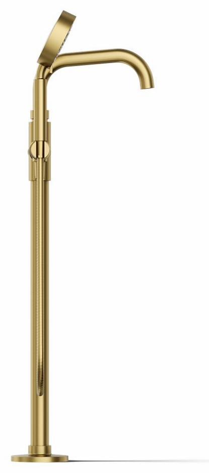 Castia by Studio McGee Floor Mount Tub Filler Trim with Hand Shower - Vibrant Brushed Moderne Brass T35924-4-2MB Kohler