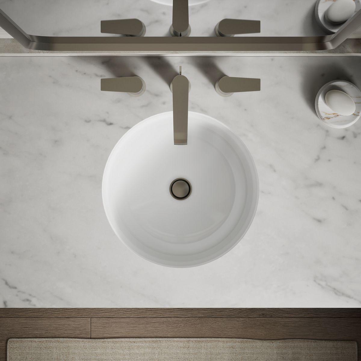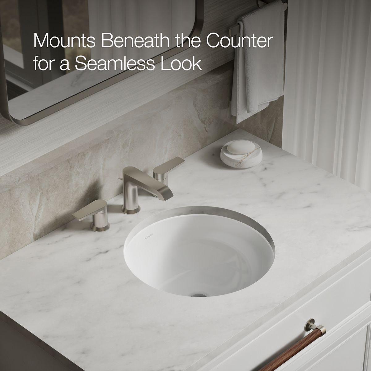 The Caxton round undermount bathroom sink has a simple, streamlined design that’s as versatile as it is attractive. This easy-to-clean sink combines a sleek look with a timeless design that suits both traditional and modern bathroom decors. Caxton creates a smooth transition from the round bowl to nearly any countertop.