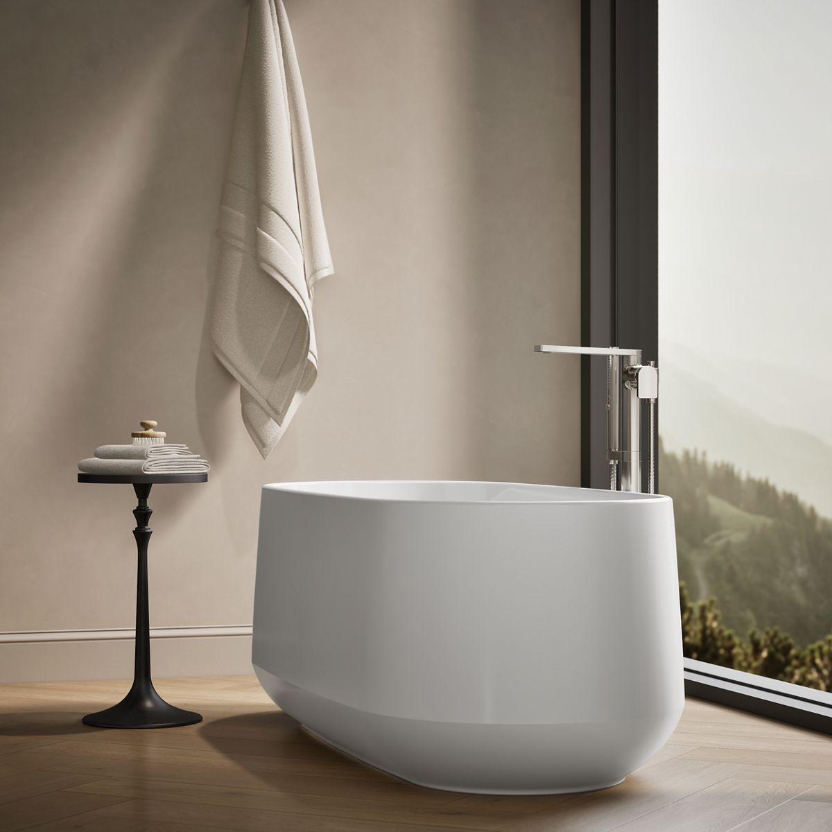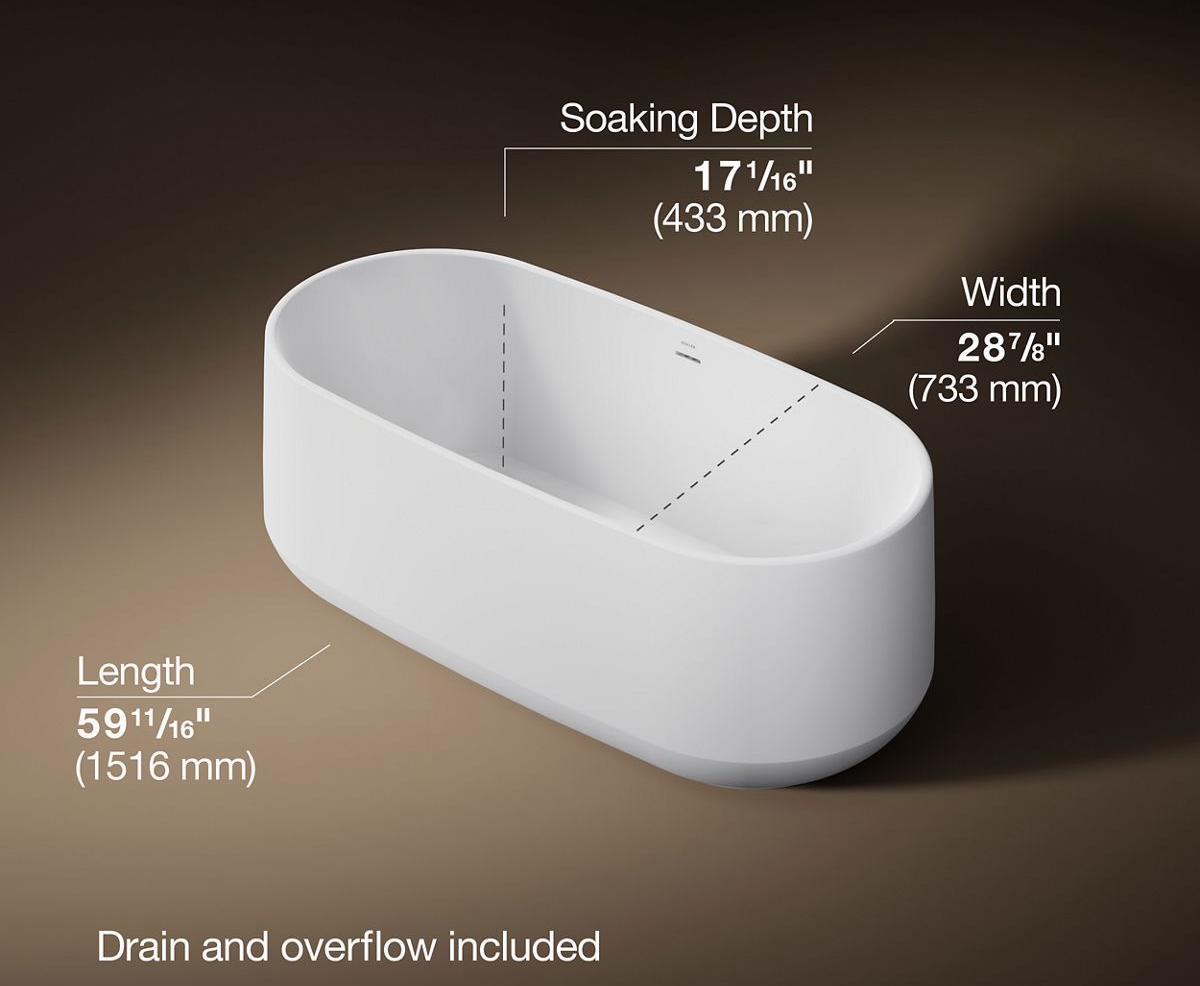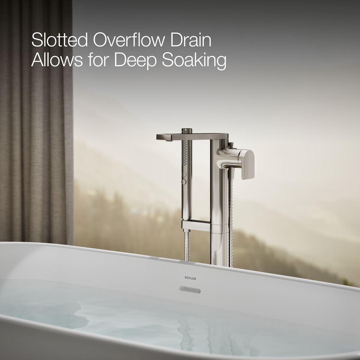 Clean, elegant, and contained, Ceric expresses contemporary warmth and simplicity. This Ceric freestanding bath lets you indulge in a deep, immersive soak as you relax against the sloped lumbar support. KOHLER Lithocast cast resin material allows for geometries with dynamic style and crisp, hand-finished detail rich with character. KOHLER Lithocast Gloss cast resin is lightweight and easy to clean, with a high-gloss finish.