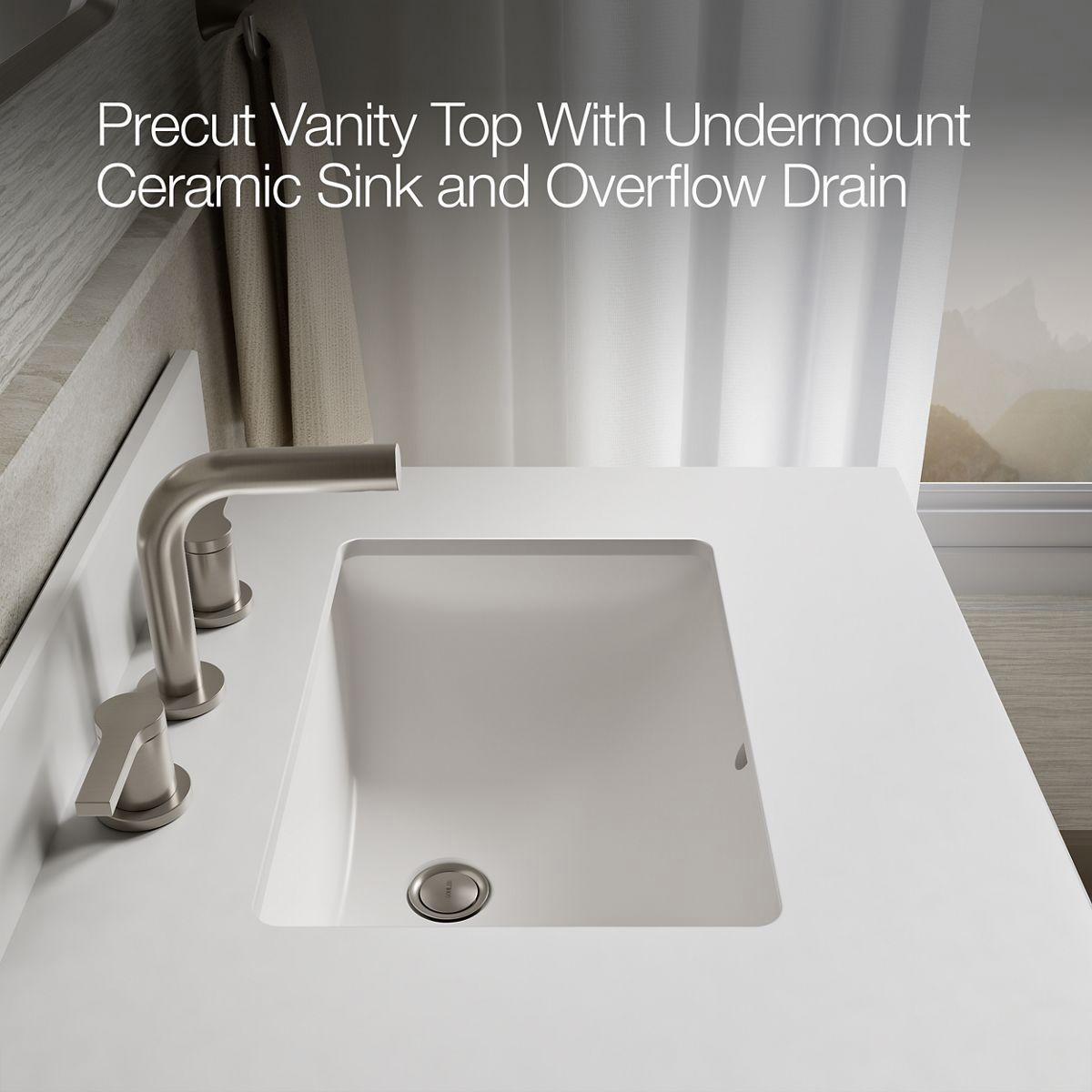 - Vanity top has 8" (203 mm) widespread faucet holes; requires deck-mount faucet (sold separately)