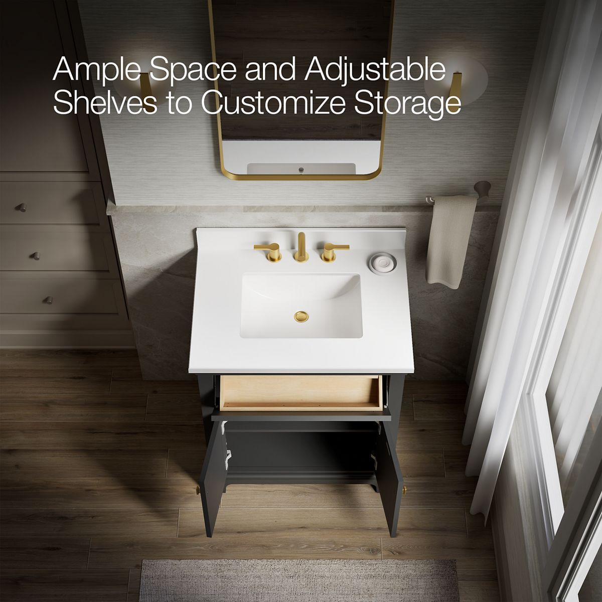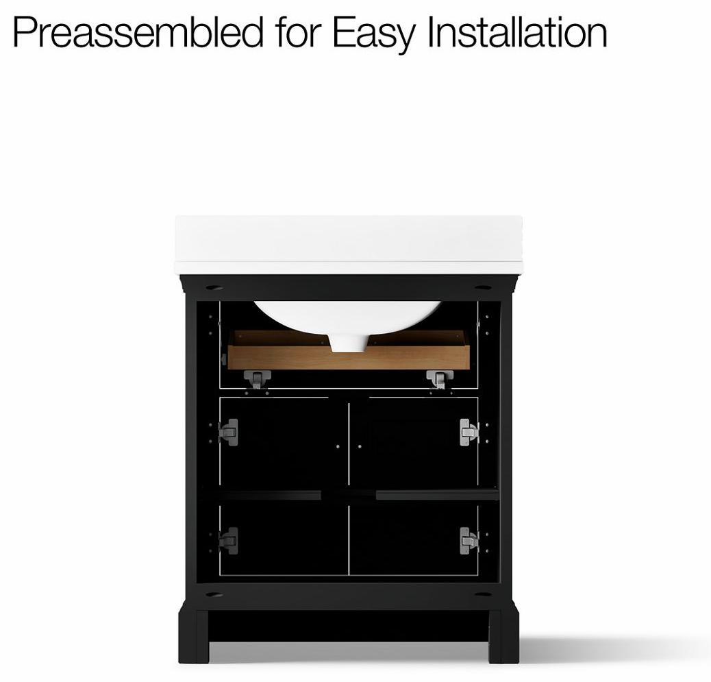 - Finish-matched cabinet interior offers generous clearance for plumbing