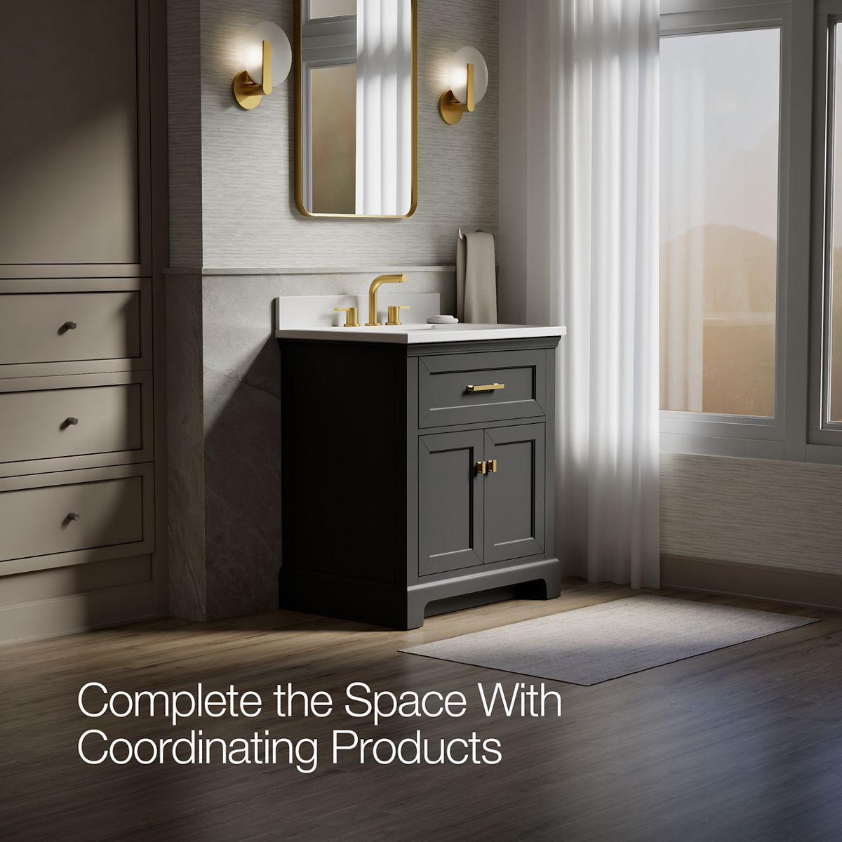 - Vanity top has 8" (203 mm) widespread faucet holes; requires deck-mount faucet (sold separately)