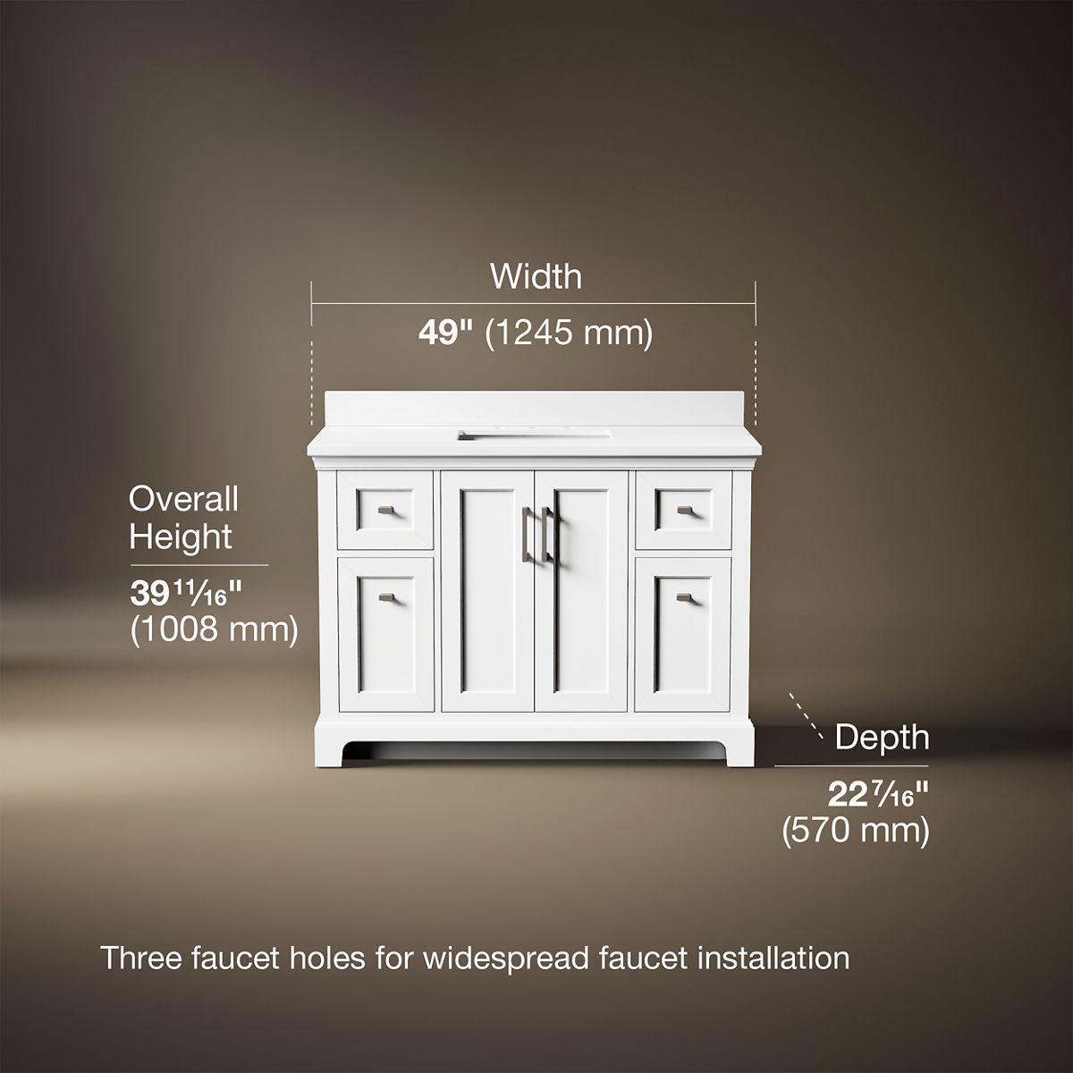 - Vanity top has 8" (203 mm) widespread faucet holes; requires deck-mount faucet (sold separately)