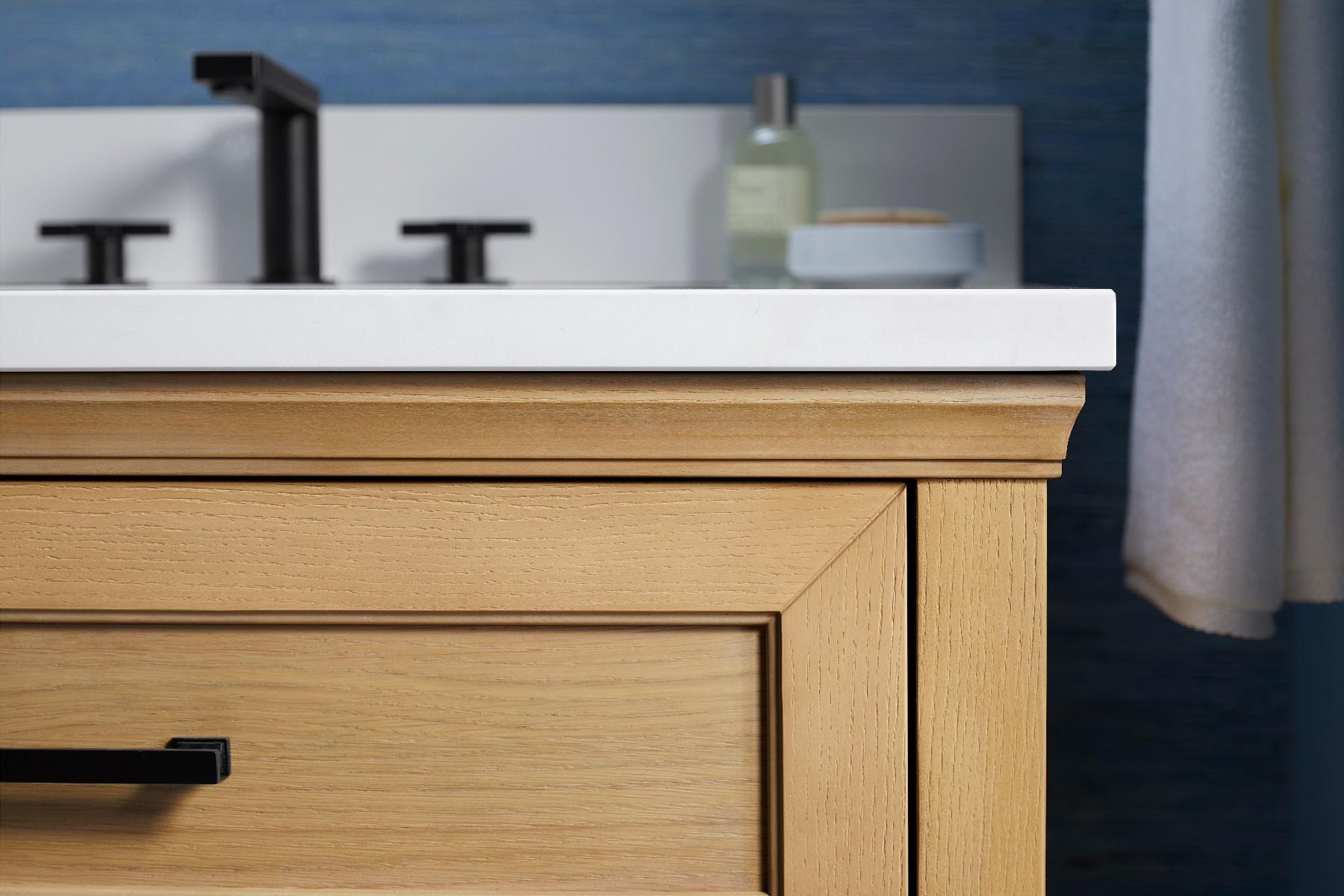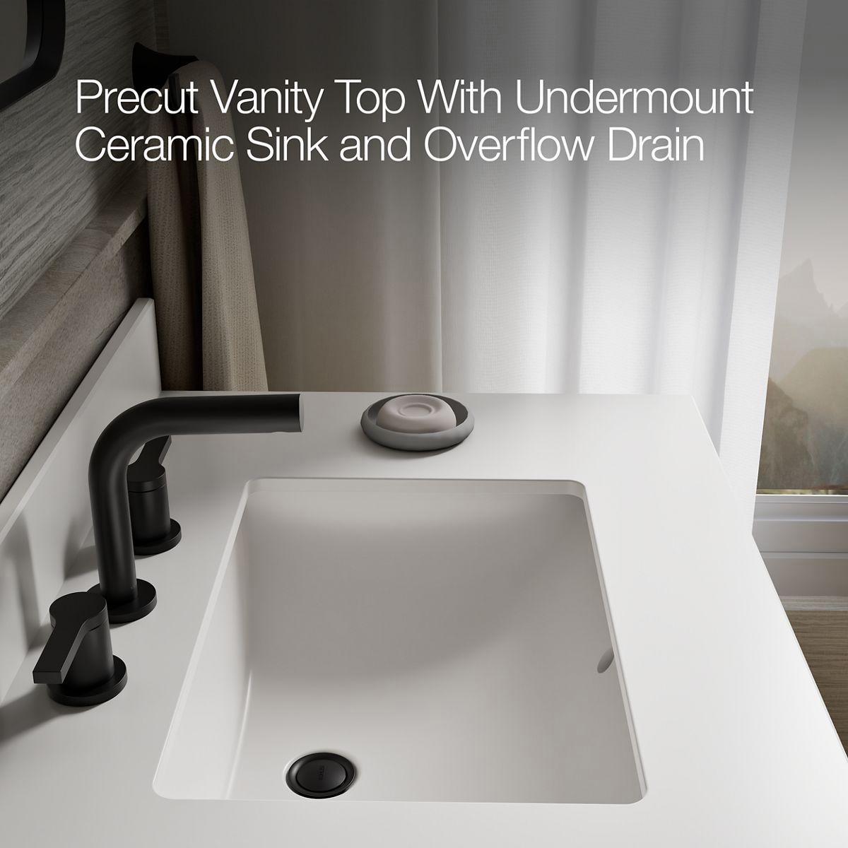 - Vanity top has 8" (203 mm) widespread faucet holes; requires deck-mount faucet (sold separately)