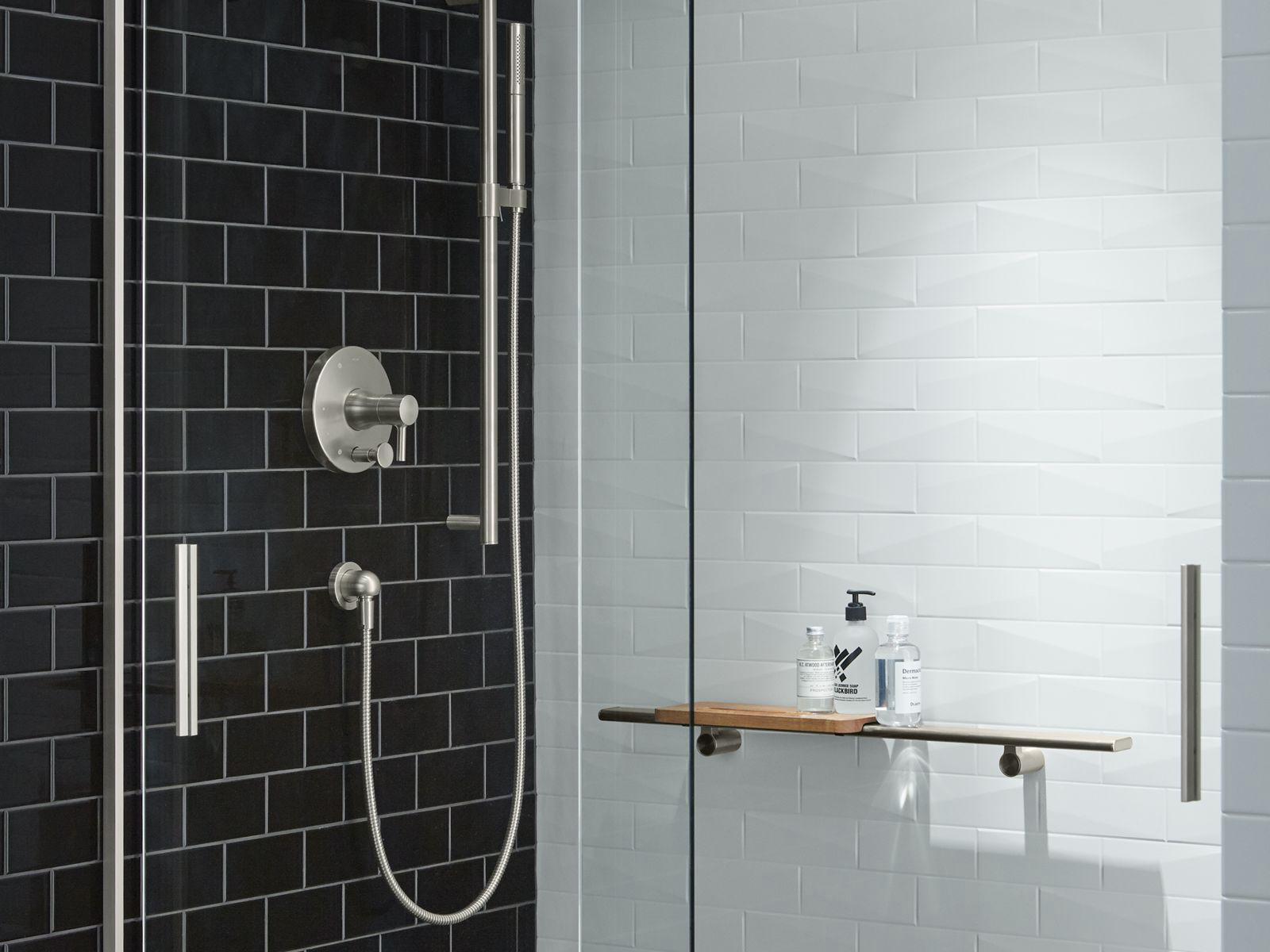 The Choreograph collection makes it easier than ever to create a shower space that caters to your needs, your style, and your life. Choreograph shower walls and accessories let you personalize your shower with beautiful wall designs and thoughtfully designed storage. Inspired by ballet dancers, this shower barre provides stability as you enter and exit the shower space. The sleek, stylish design offers support for mobility assistance and everyday routines such as scrubbing feet, shaving legs, or stretching.