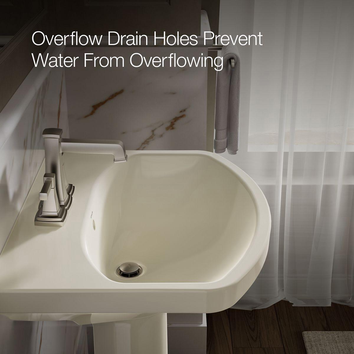 The Cimarron collection combines the best of traditional and contemporary design for a versatile look that complements a range of bathroom styles. Beveled edges and simple lines enhance the uniquely shaped basin. Pair it with the K-2364 pedestal for a perfect match.