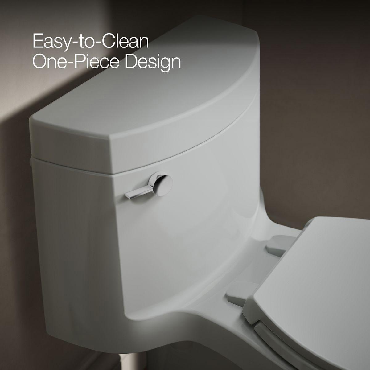- One-piece toilets integrate the tank and bowl into a seamless, easy-to-clean design.