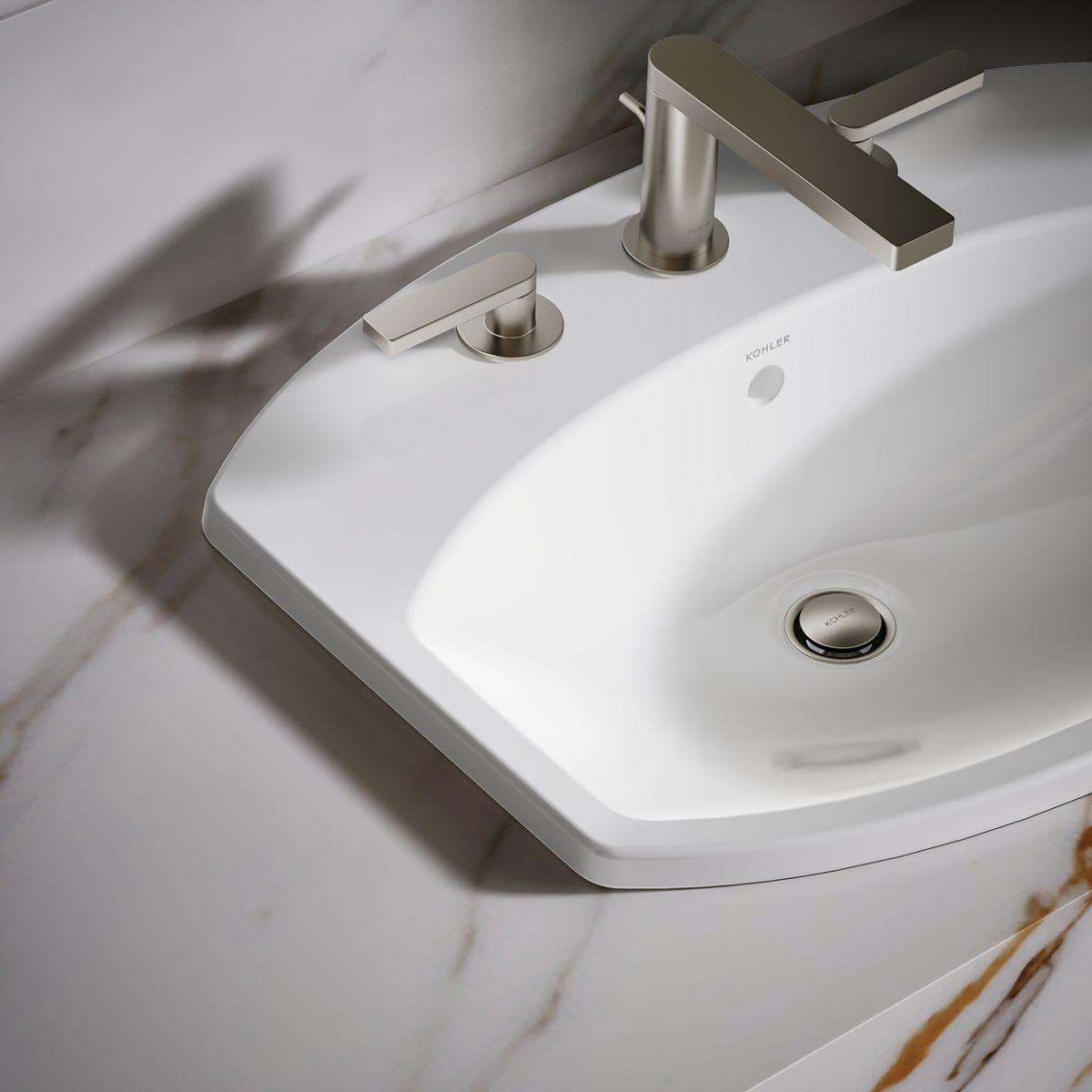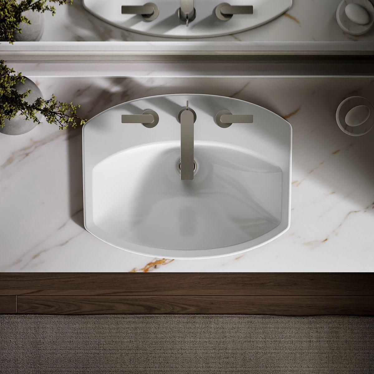 The Cimarron collection combines the best of traditional and contemporary design for a versatile look that complements a range of bathroom styles. Beveled edges and simple lines enhance the uniquely shaped basin.