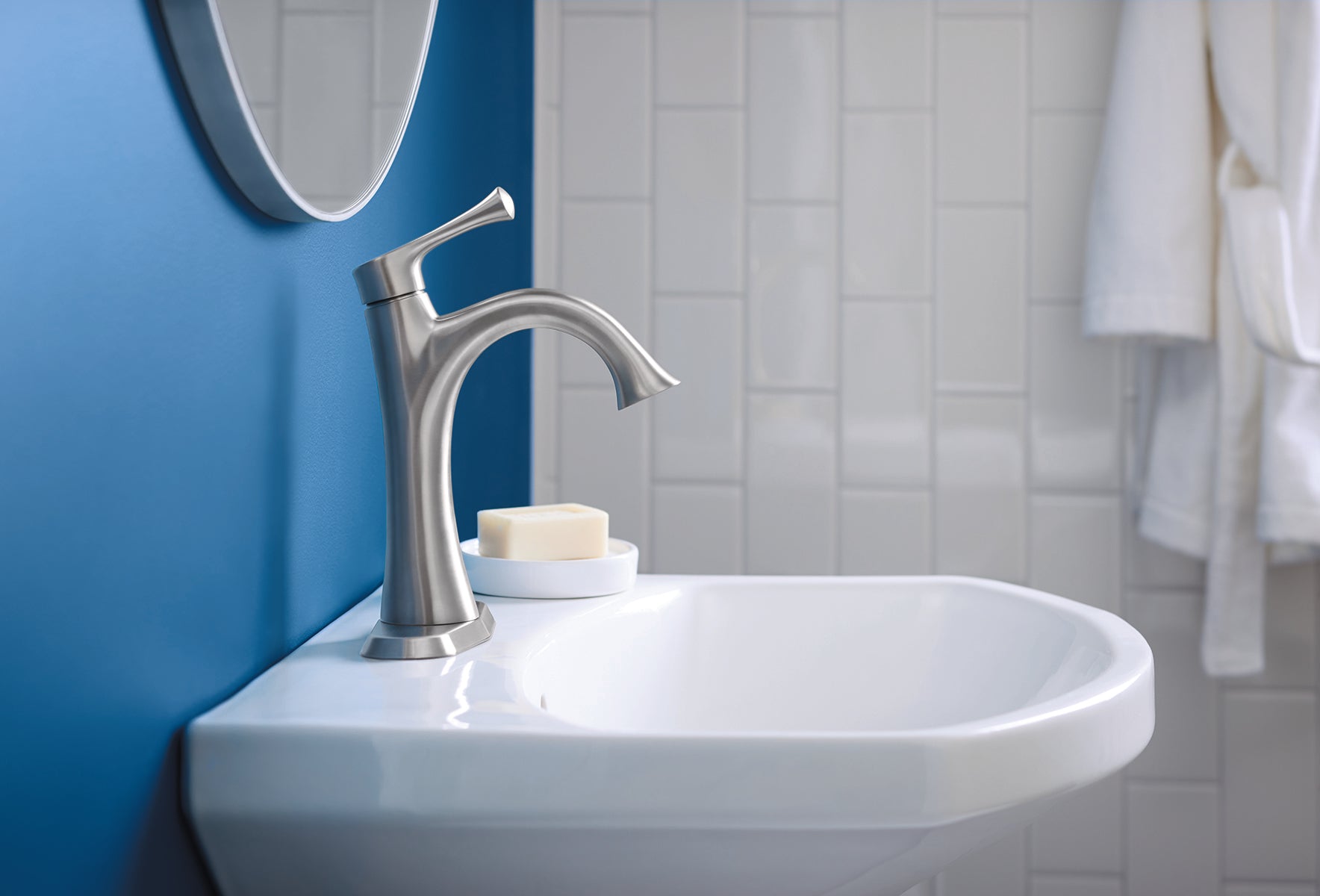The Cimarron collection combines the best of traditional and contemporary design for a versatile look that complements a range of bathroom styles. Beveled edges and simple lines enhance the uniquely shaped basin.
