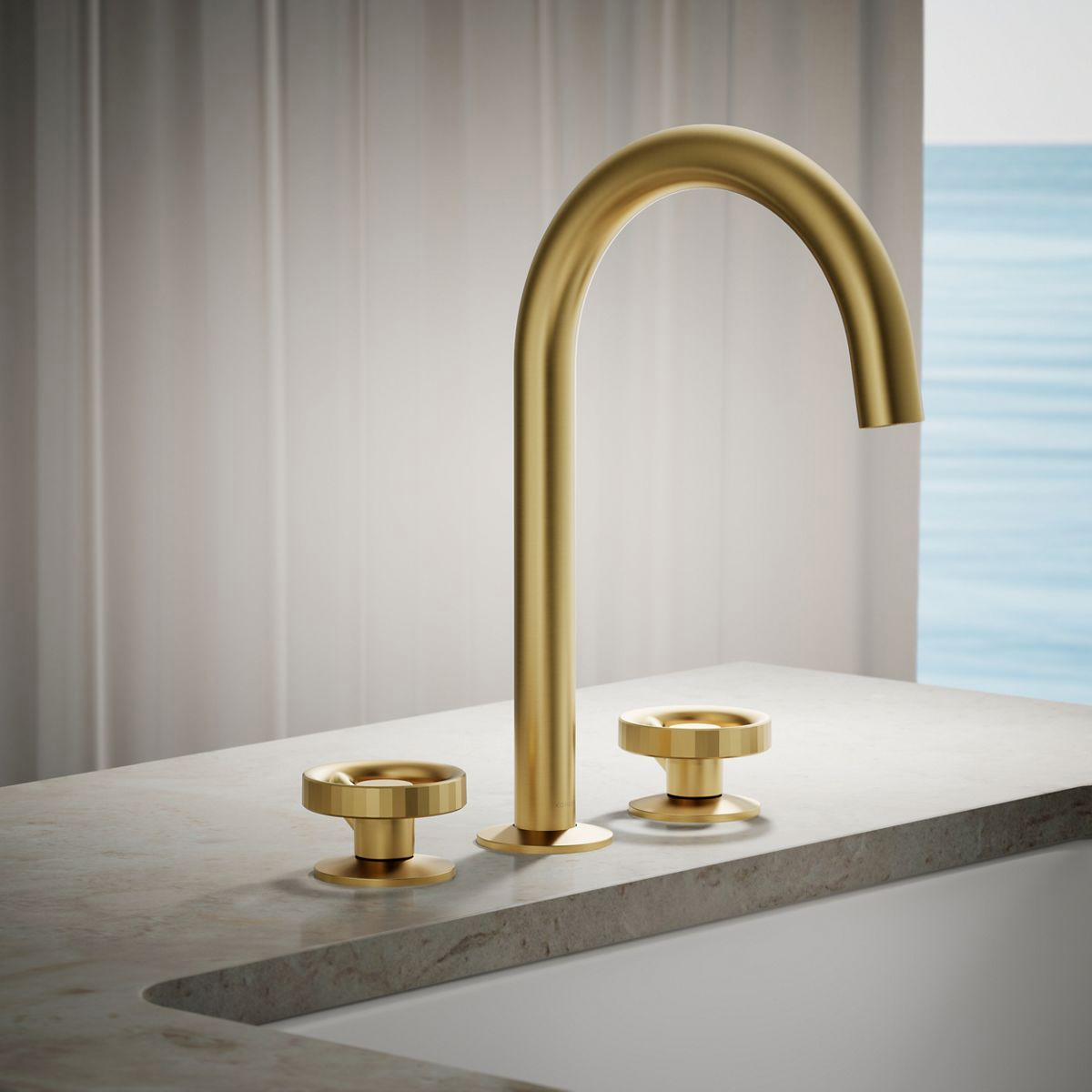 Components Deck Mount Tub Faucet Handles with Industrial Design - Vibrant Brushed Moderne Brass 77990-9-2MB Kohler