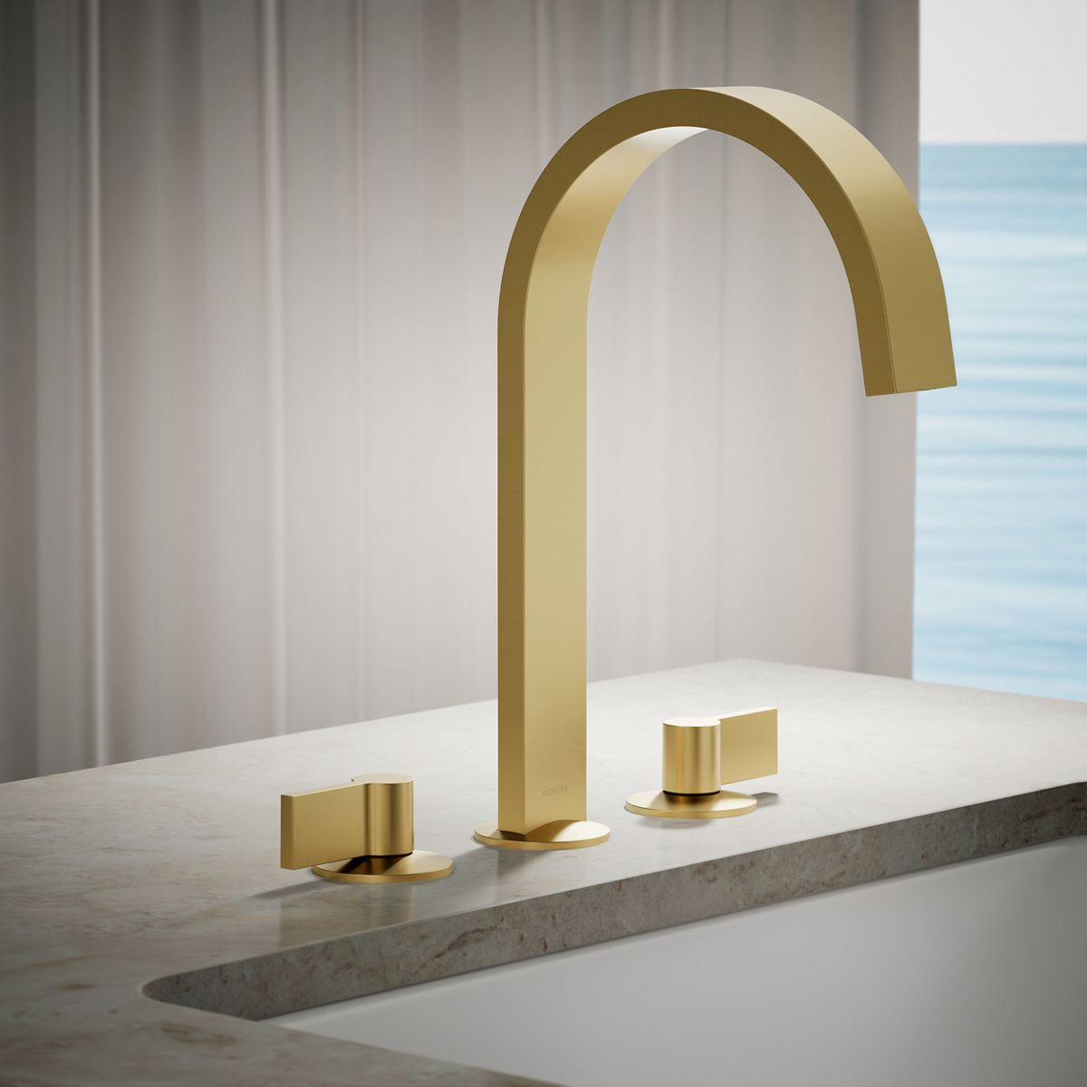 Components Deck Mount Tub Faucet Spout Ribbon Design (Less Handles) - Vibrant Brushed Moderne Brass 77986-2MB Kohler