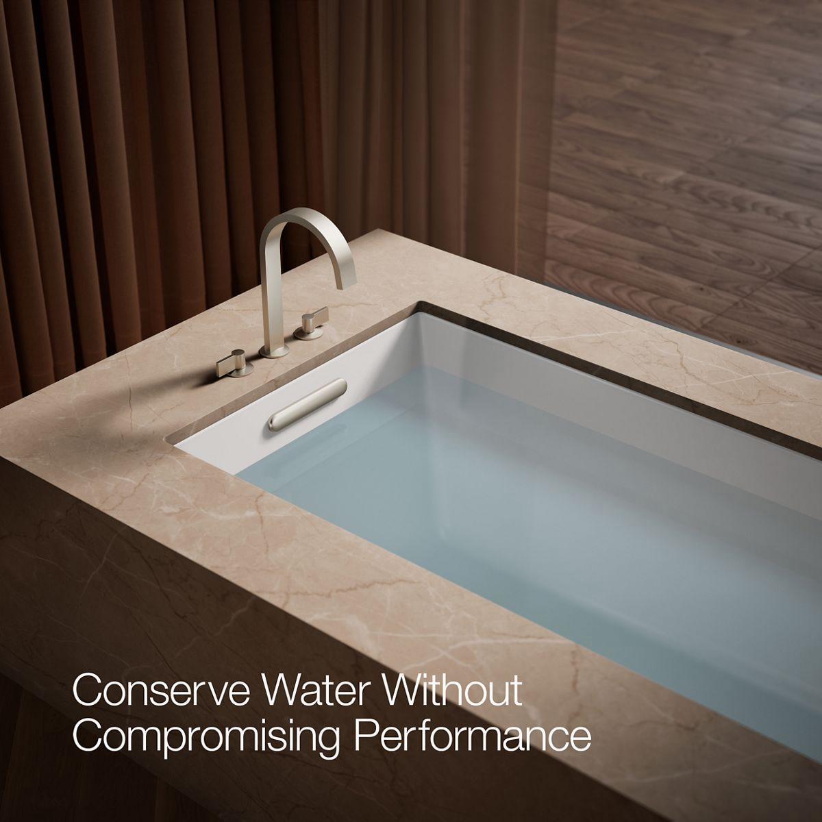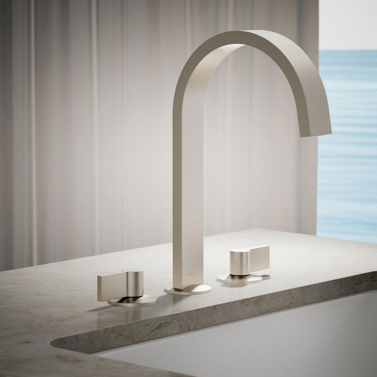 Modern form meets modern function: the KOHLER Components collection is defined by controlled forms and stark precision in every line and angle. With Components, you design your custom bath. Choose a spout, handles and finish to build your own signature modern look. Featuring a sweeping architectural aesthetic, this Ribbon spout pairs with your choice of Components bath faucet handles for a personalized design.
