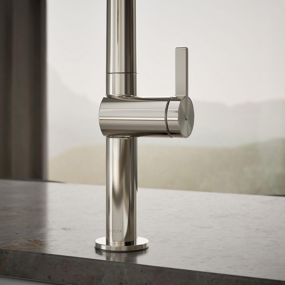Sleek and minimalist, the Components collection exudes calm sophistication. Strong, confident lines create bold and distinctive silhouettes accentuated by refined design details. The Components pull-down kitchen sink faucet melds this very style with two spray functions, and the DockNetik secure docking system conveniently locks the sprayhead in place with not in use.