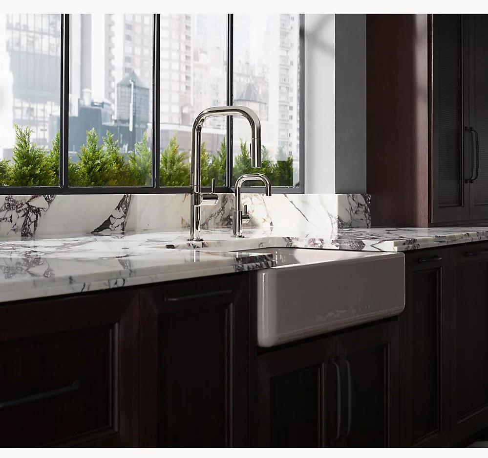 - High-arch spout offers vertical clearance for tall cookware and pitchers