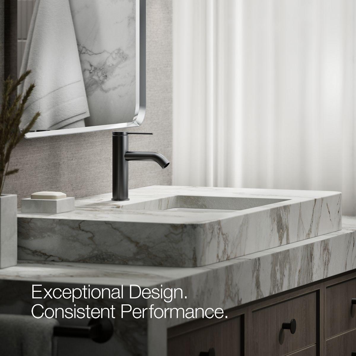 Modern form meets modern function: the KOHLER Components collection is defined by controlled forms and stark precision in every line and angle. With Components, you design your custom bath. This single-hole bathroom sink faucet features a slim, elegant pin lever handle that is easy to grasp and control with one hand. Coordinate this sink faucet with Components shower and bath faucets and accessories to create a personalized design.