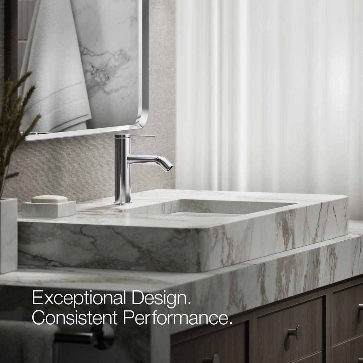 Modern form meets modern function: the KOHLER Components collection is defined by controlled forms and stark precision in every line and angle. With Components, you design your custom bath. This single-hole bathroom sink faucet features a slim, elegant pin lever handle that is easy to grasp and control with one hand. Coordinate this sink faucet with Components shower and bath faucets and accessories to create a personalized design.