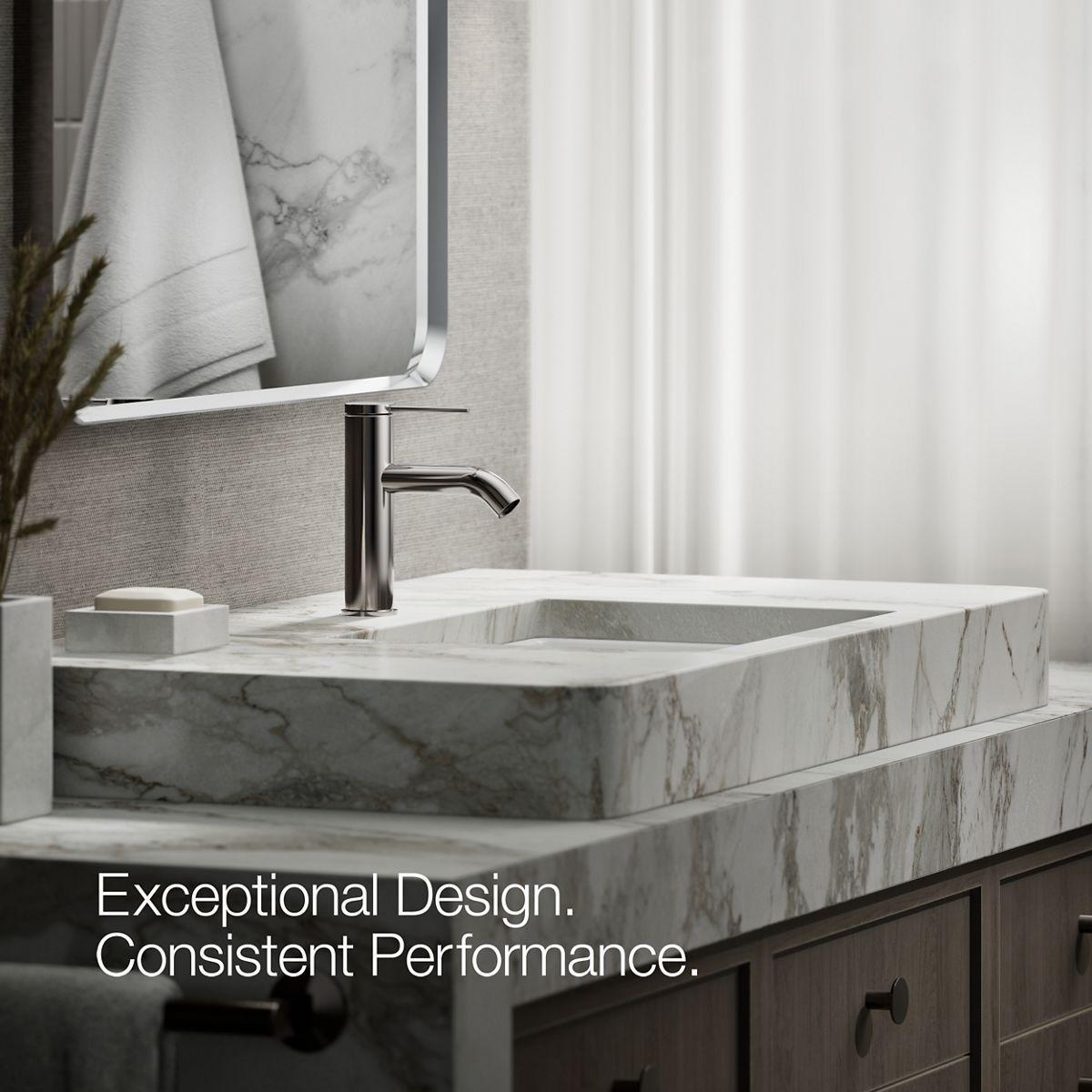Modern form meets modern function: the KOHLER Components collection is defined by controlled forms and stark precision in every line and angle. With Components, you design your custom bath. This single-hole bathroom sink faucet features a slim, elegant pin lever handle that is easy to grasp and control with one hand. Coordinate this sink faucet with Components shower and bath faucets and accessories to create a personalized design.