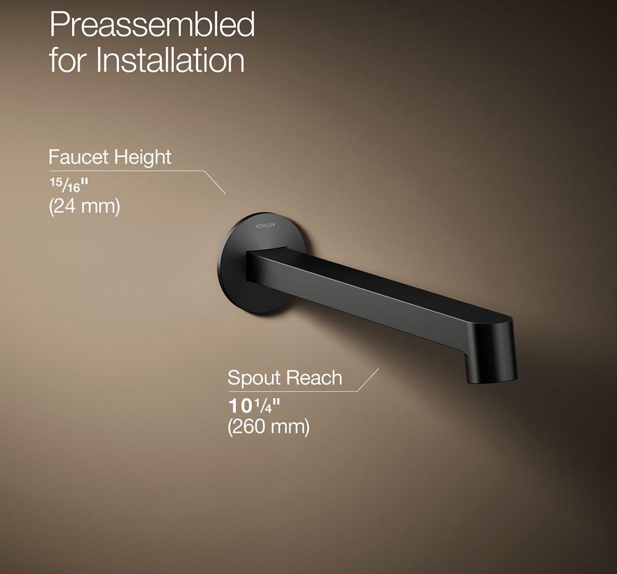 - 10-1/4" (260 mm) spout reach from wall to center of drain.
