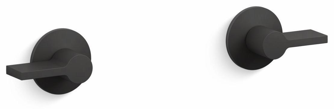 - Two-handle bathroom faucet trim for wall-mount installations.