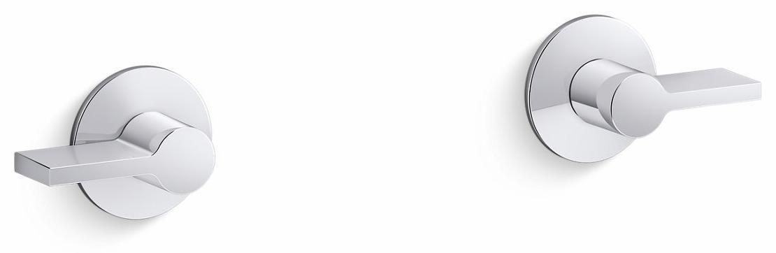 - Two-handle bathroom faucet trim for wall-mount installations.