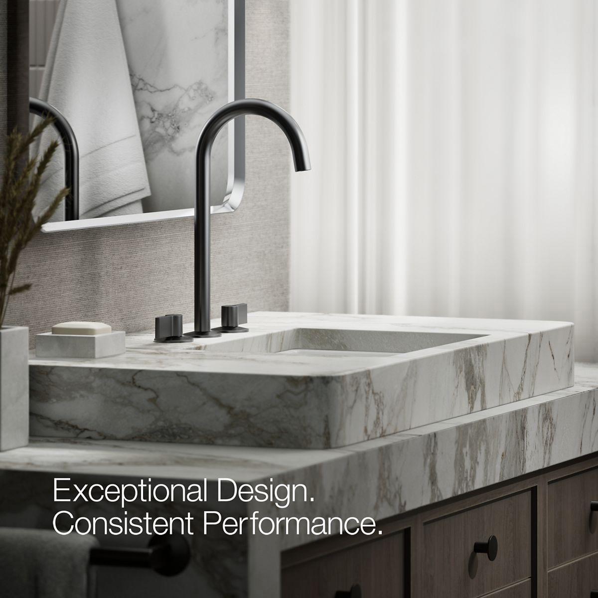 Modern form meets modern function: the KOHLER Components collection is defined by controlled forms and stark precision in every line and angle. With Components, you design your custom bath. Choose a spout, handles, and finish to build your own signature modern look. Minimalist and statuesque, this Tube spout features a tall height that complements vessel-style sinks. Pair it with your choice of Components sink faucet handles for a personalized design.