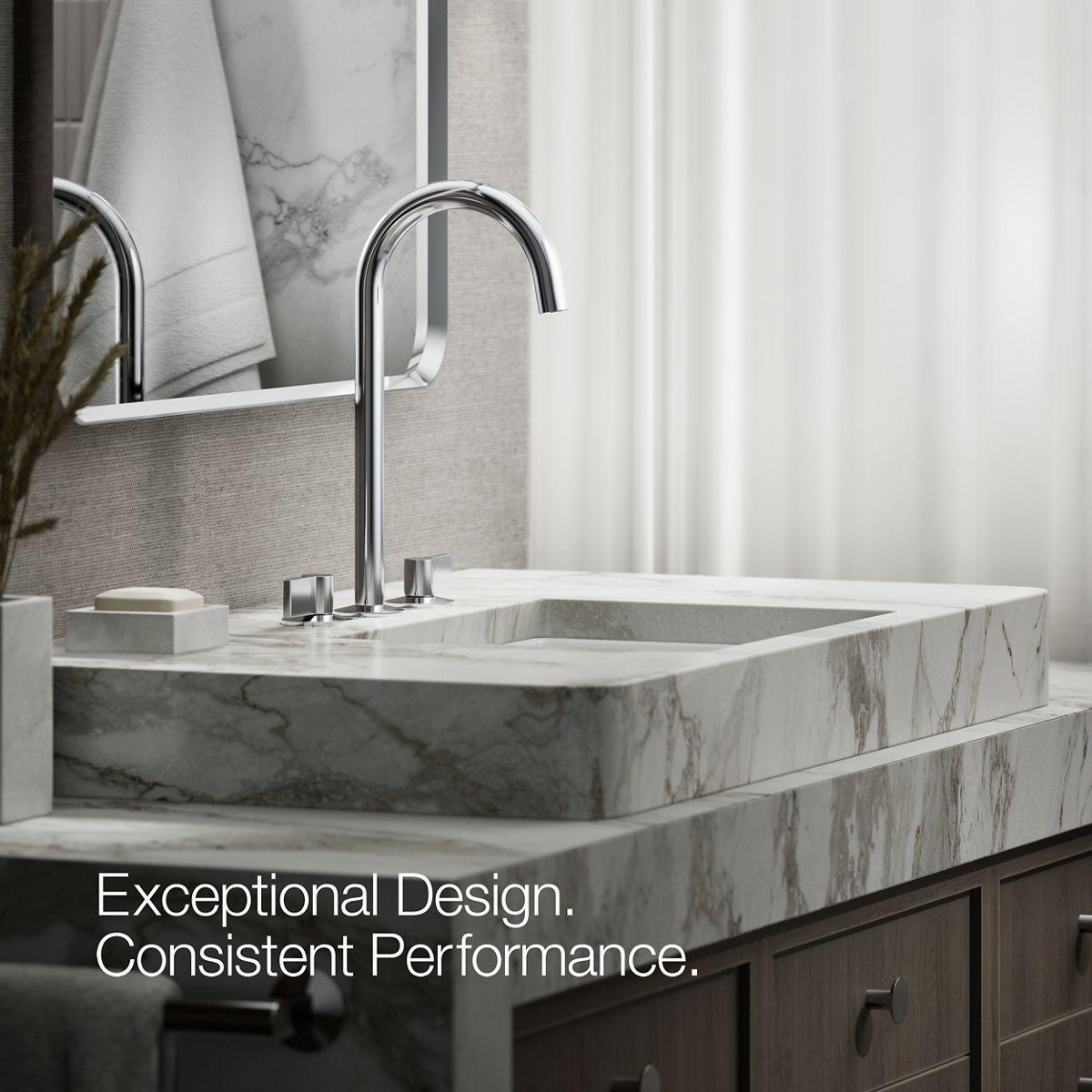 Modern form meets modern function: the KOHLER Components collection is defined by controlled forms and stark precision in every line and angle. With Components, you design your custom bath. Choose a spout, handles, and finish to build your own signature modern look. Minimalist and statuesque, this Tube spout features a tall height that complements vessel-style sinks. Pair it with your choice of Components sink faucet handles for a personalized design.