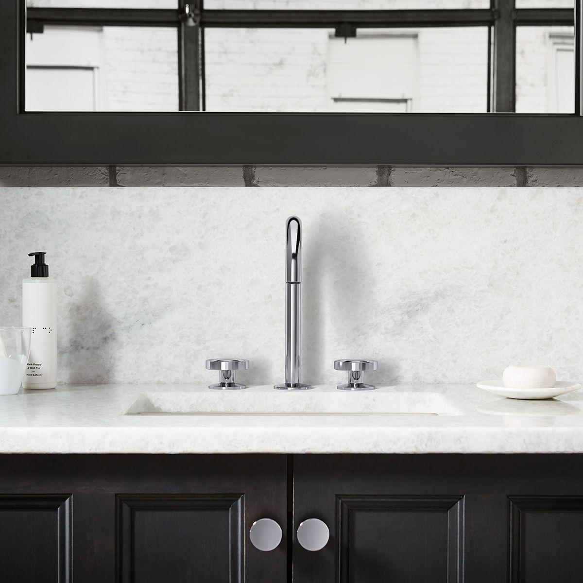 Modern form meets modern function: the KOHLER Components collection is defined by controlled forms and stark precision in every line and angle. With Components, you design your custom bath. Choose a spout, handles, and finish to build your own signature modern look. Minimalist and statuesque, this Tube spout pairs with your choice of Components sink faucet handles for a personalized design.