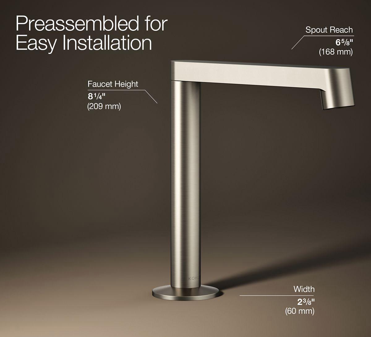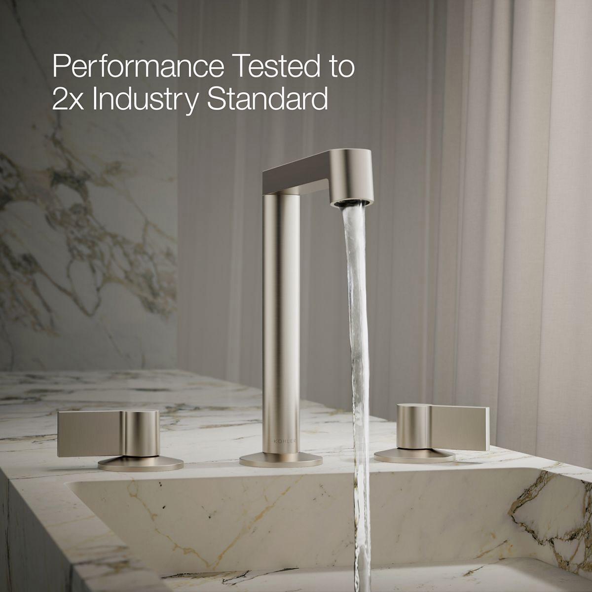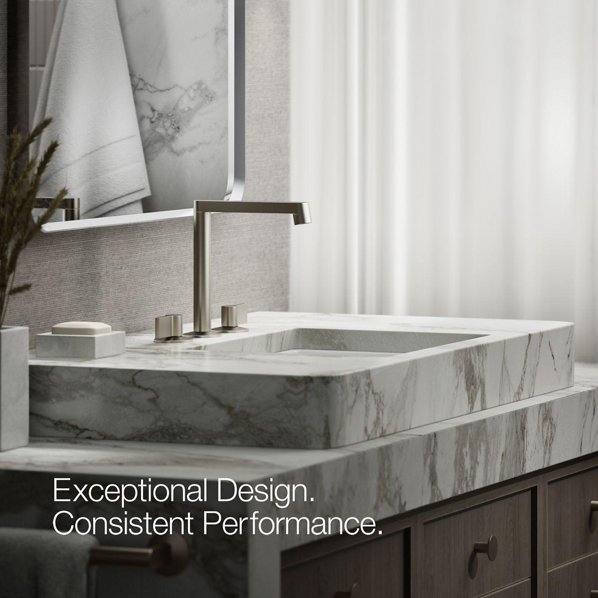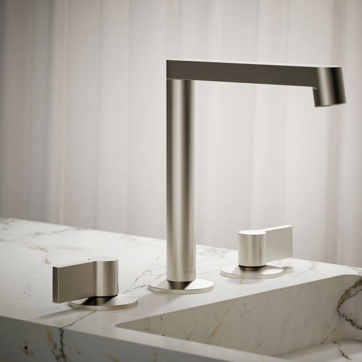 Modern form meets modern function: the KOHLER Components collection is defined by controlled forms and stark precision in every line and angle. With Components, you design your custom bath. Choose a spout, handles, and finish to build your own signature modern look. Displaying a monumental yet playful angularity, this Row spout pairs with your choice of Components sink handles for a personalized design.