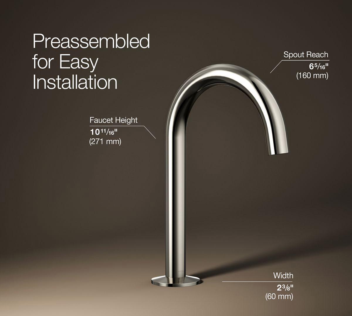 Modern form meets modern function: the KOHLER Components collection is defined by controlled forms and stark precision in every line and angle. With Components, you design your custom bath. Choose a spout, handles, and finish to build your own signature modern look. Minimalist and statuesque, this Tube spout pairs with your choice of Components sink faucet handles for a personalized design.