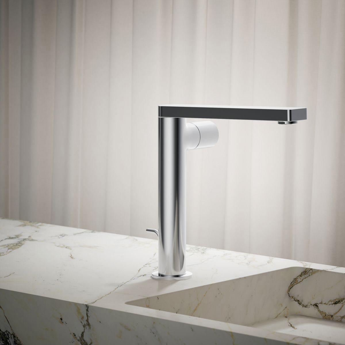 Timeless and deliberate, the Composed collection embodies the beautifully understated elements of minimalist design. By eliminating unnecessary details, the collection is designed to elicit an emotional response with its stark, refined beauty. This tall single-handle faucet is a striking complement to vessel sinks.