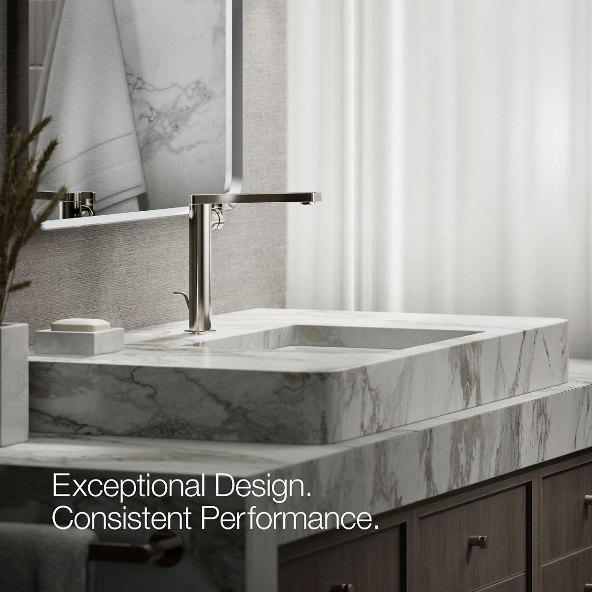 Timeless and deliberate, the Coralais collection embodies the beautifully understated elements of minimalist design. By eliminating unnecessary details, the collection is designed to elicit an emotional response with its stark, refined beauty. This tall single-handle faucet is a striking complement to vessel sinks.