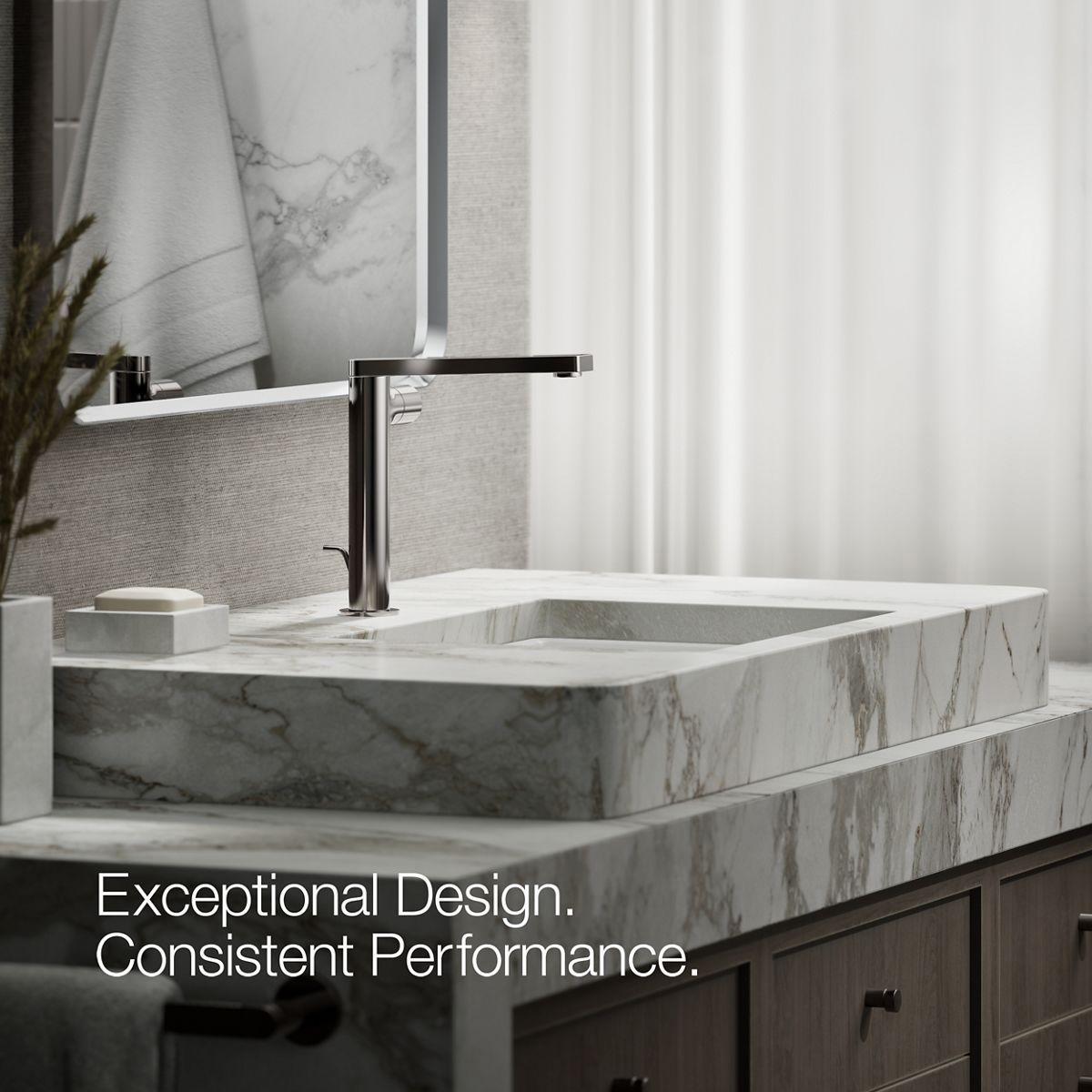 Timeless and deliberate, the Composed collection embodies the beautifully understated elements of minimalist design. By eliminating unnecessary details, the collection is designed to elicit an emotional response with its stark, refined beauty. This tall single-handle faucet is a striking complement to vessel sinks.