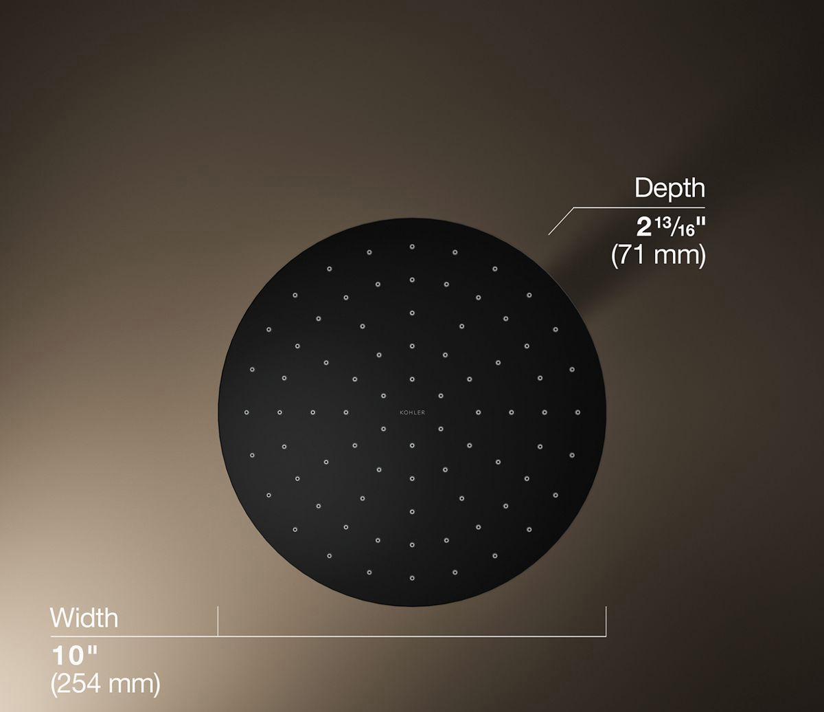 Enjoy a shower that simulates the soaking deluge of a warm summer downpour. This contemporary-style rainhead features innovative Katalyst air-induction technology, which efficiently mixes air and water to produce large water droplets and deliver a powerful, thoroughly drenching overhead shower experience. Its clean good looks and durable finish coordinate with many other KOHLER faucets and accessories.